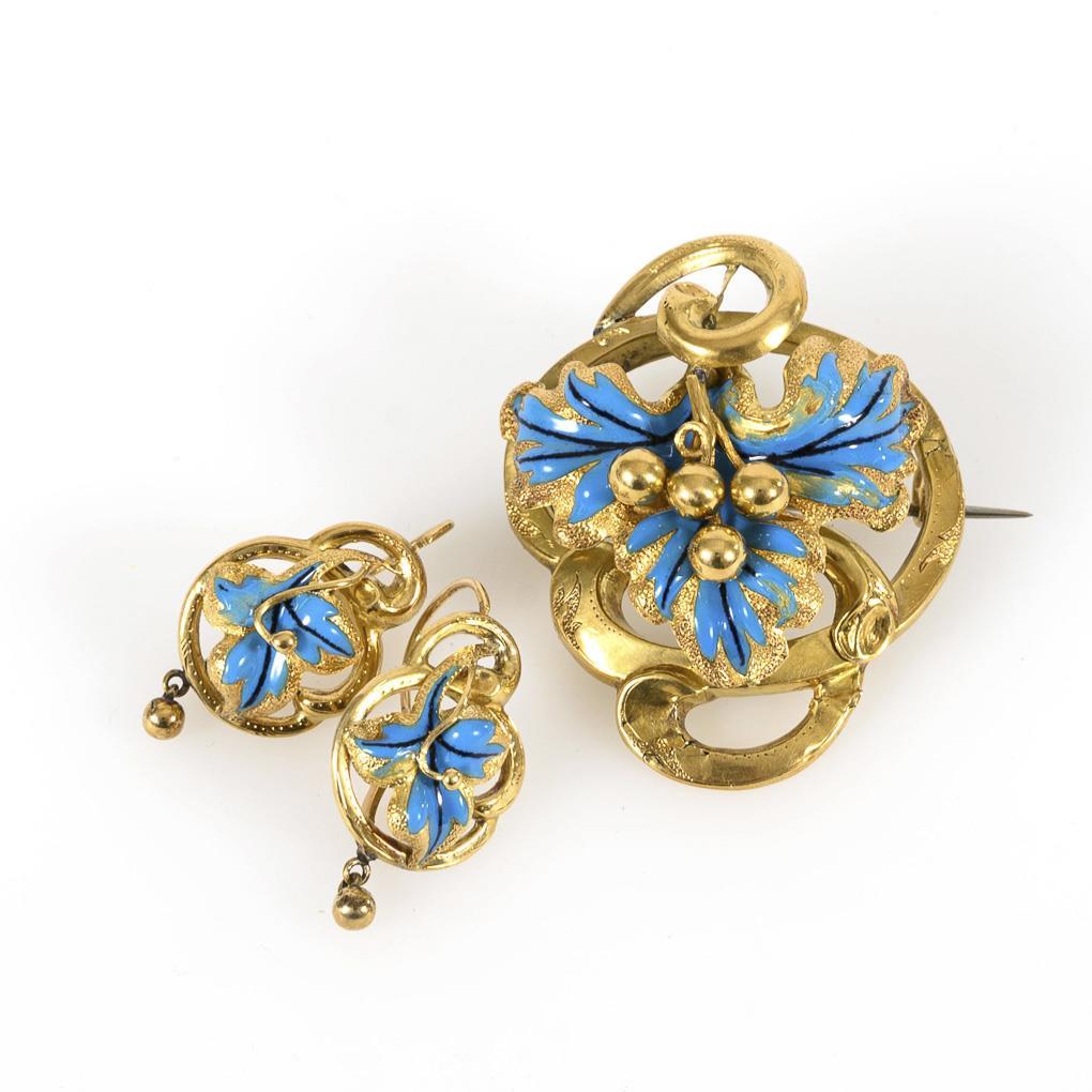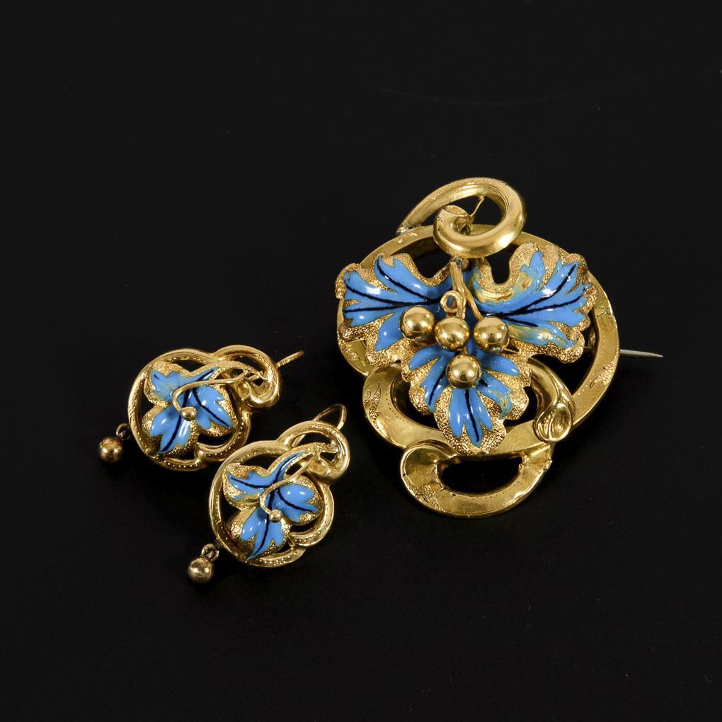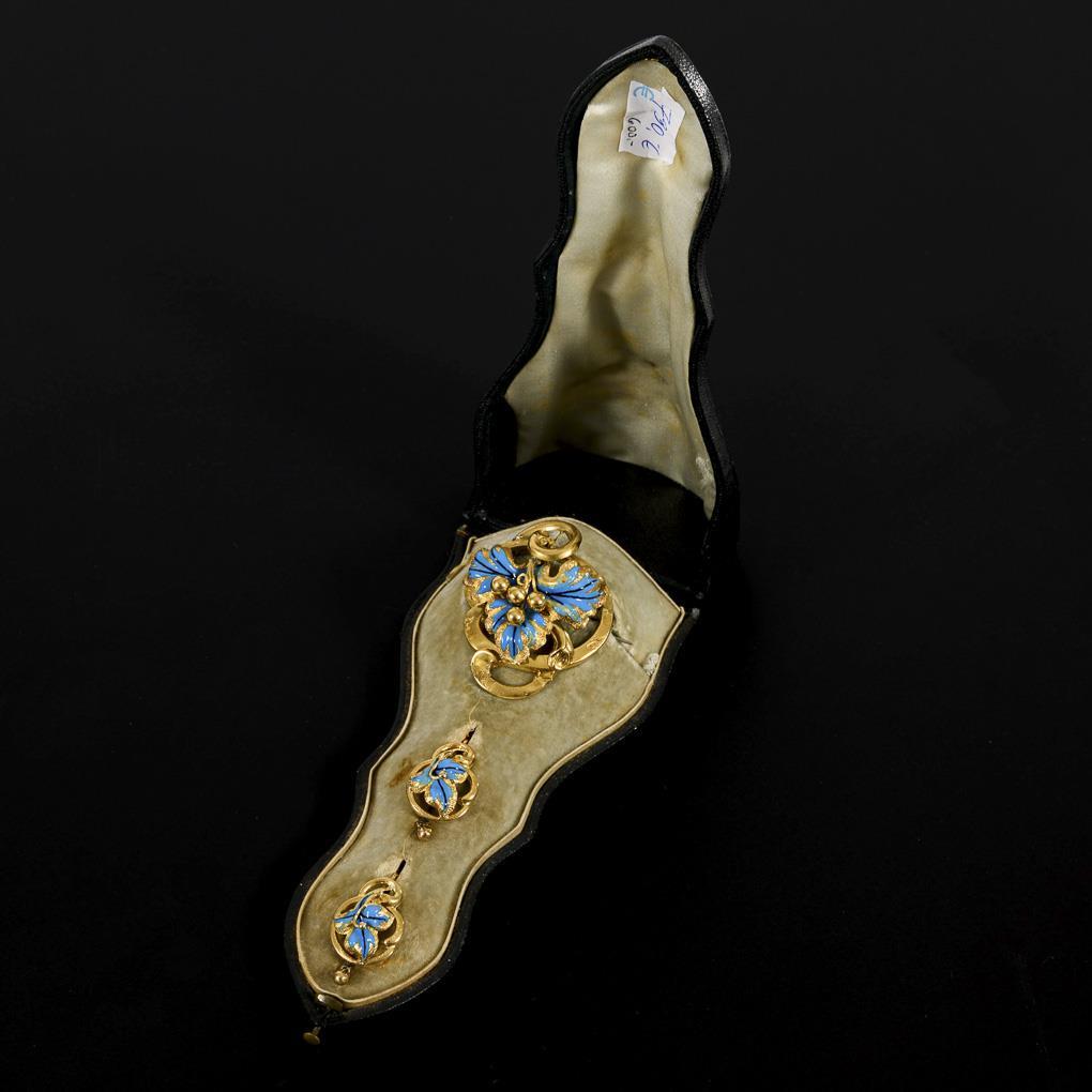 Biedermeier demi-parure with enamel, in original case.