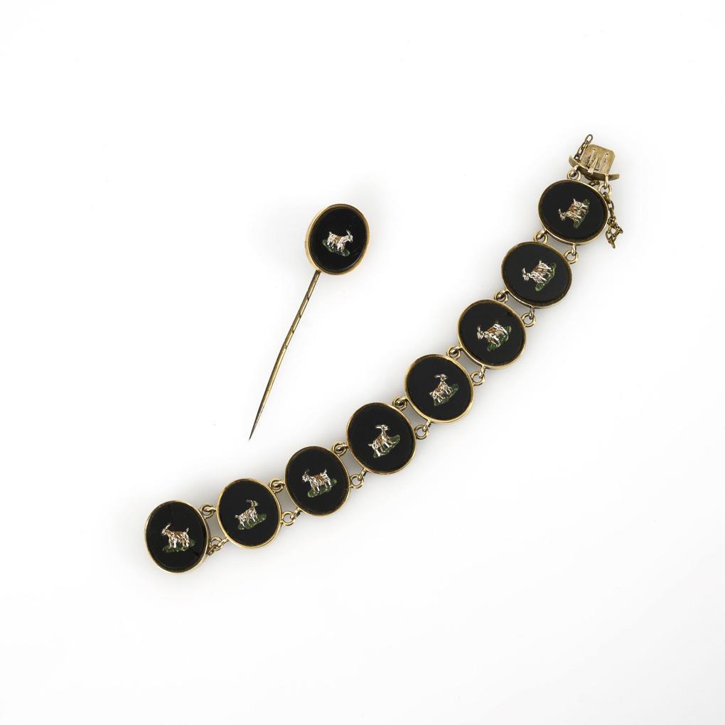 Italian bracelet and tie pin with micromosaics 2nd h. 19th c.