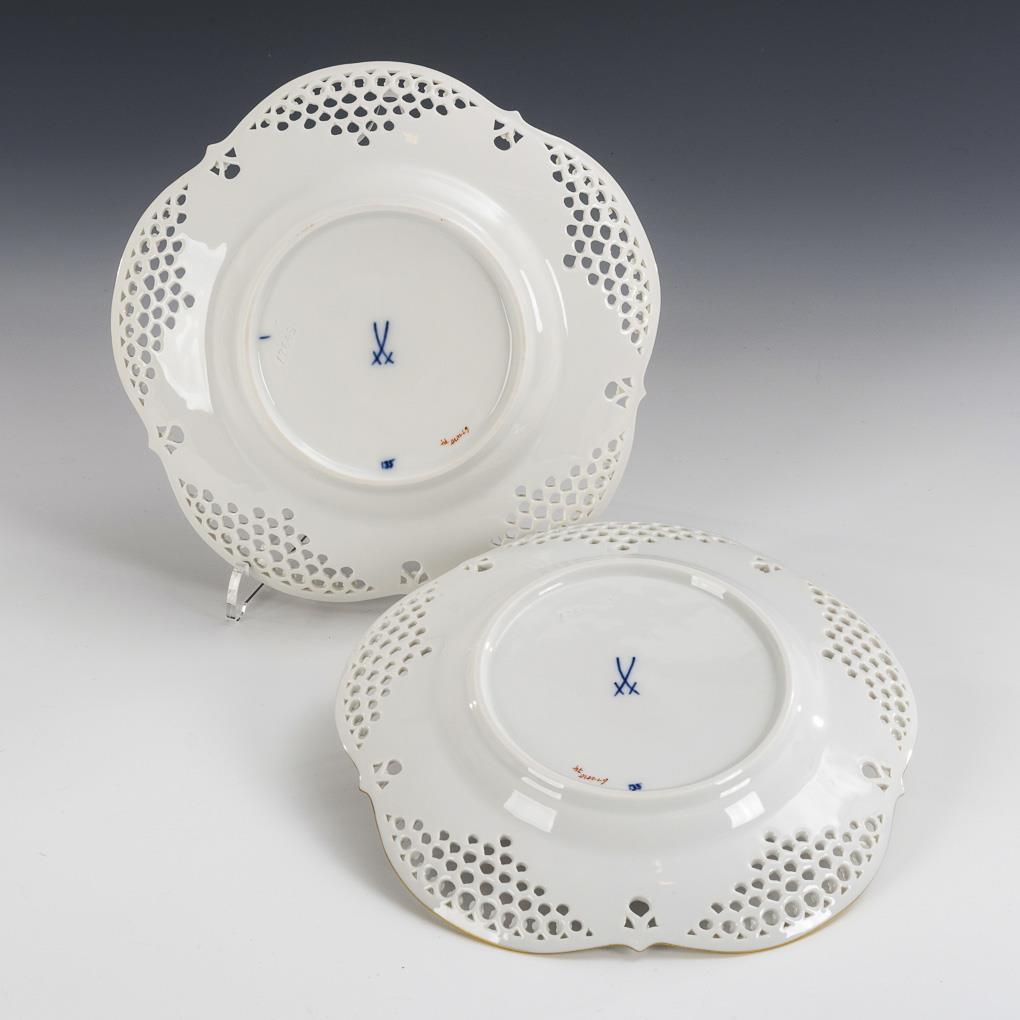 2 breakthrough plates "Blue colorful flower". Meissen.