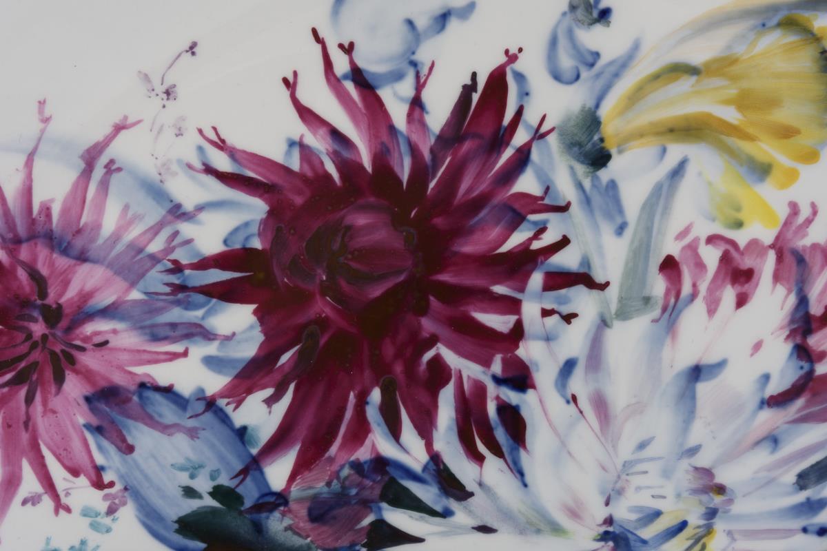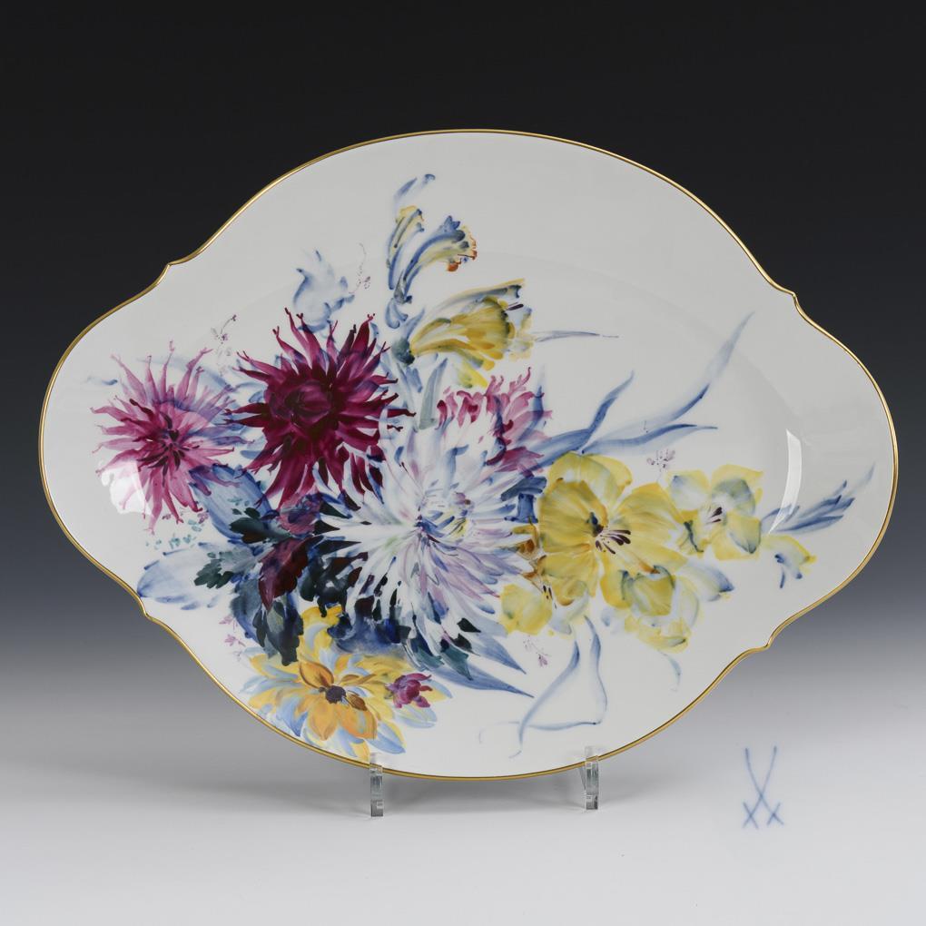 Oval plate "Blue colorful flower". Meissen.