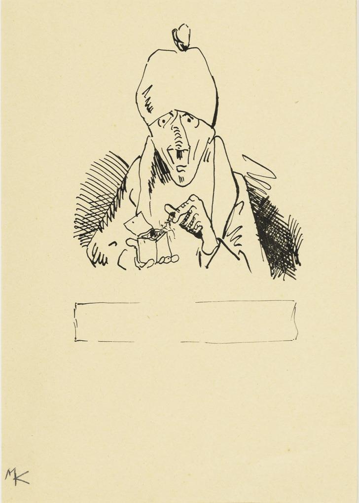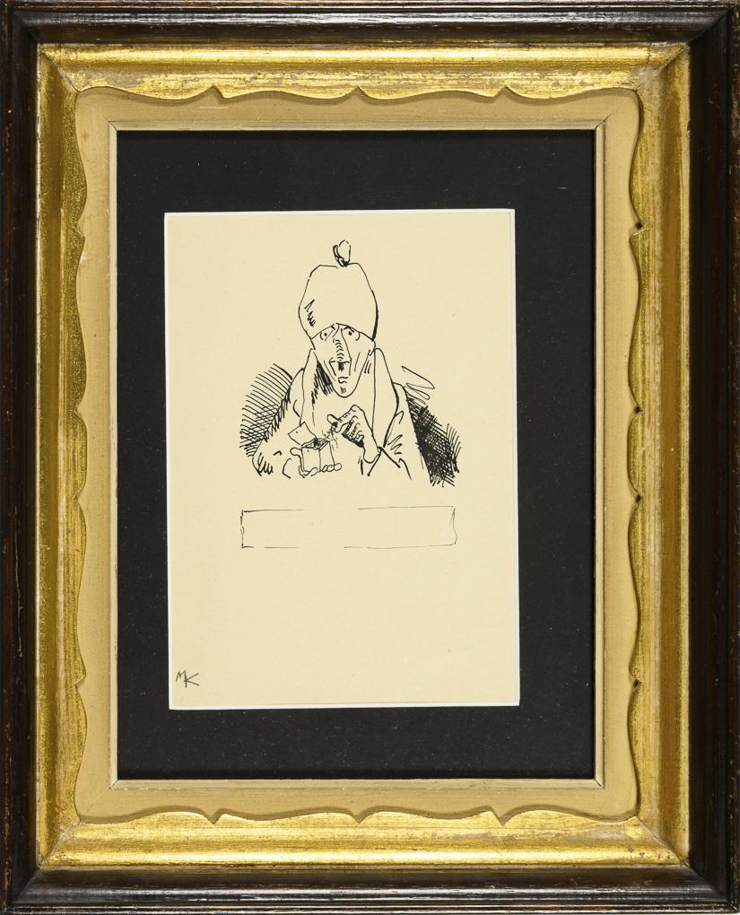 Ink drawing. Pencil monogram, handwritten on verso "KAUS".