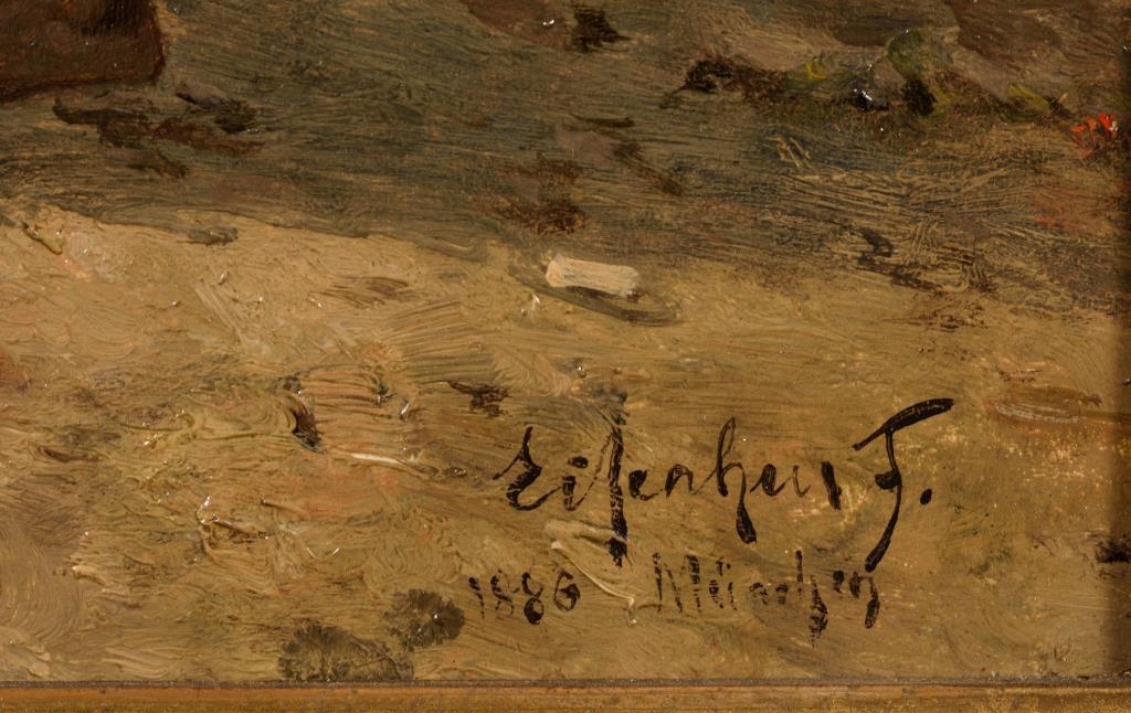 Öl/Holz.Rechts unten signiert, verso betitelt.Datiert: 1886 mit Zusatz München.