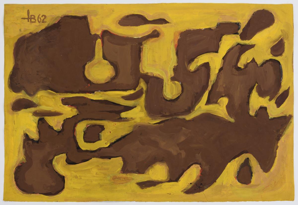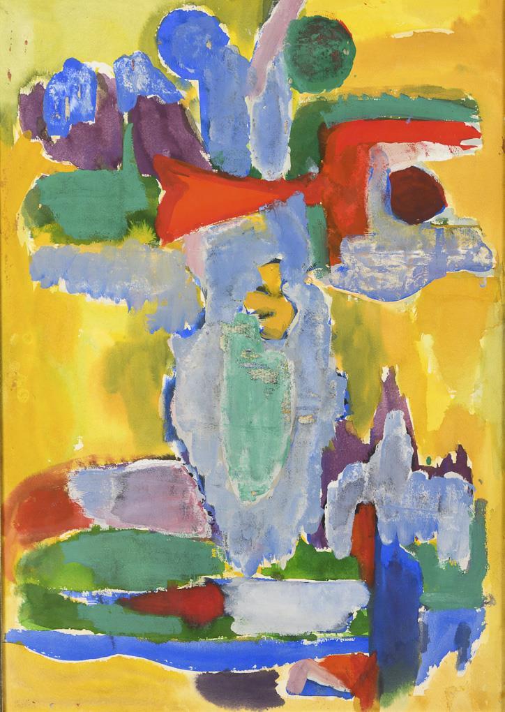 Watercolor / opaque colors. Unsigned, verso another abstract composition, monogrammed. (19)62.