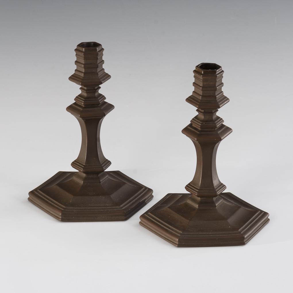 Hexagonal candlesticks with multiple jointed shaft.