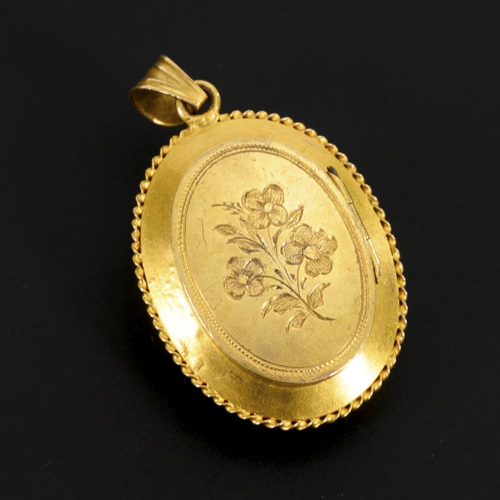 Tested yellow gold 585. 3.5 x 2.5 cm. 9,4 g.