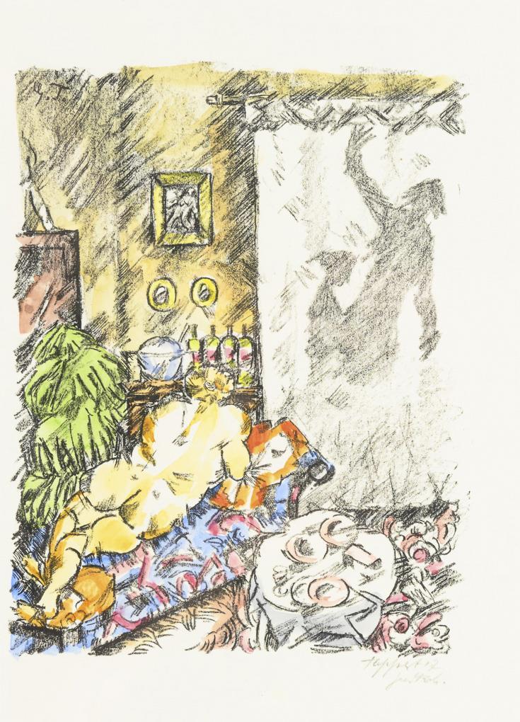 Aquare lithograph. Pencil signature and indistinct lettering. [19]17.