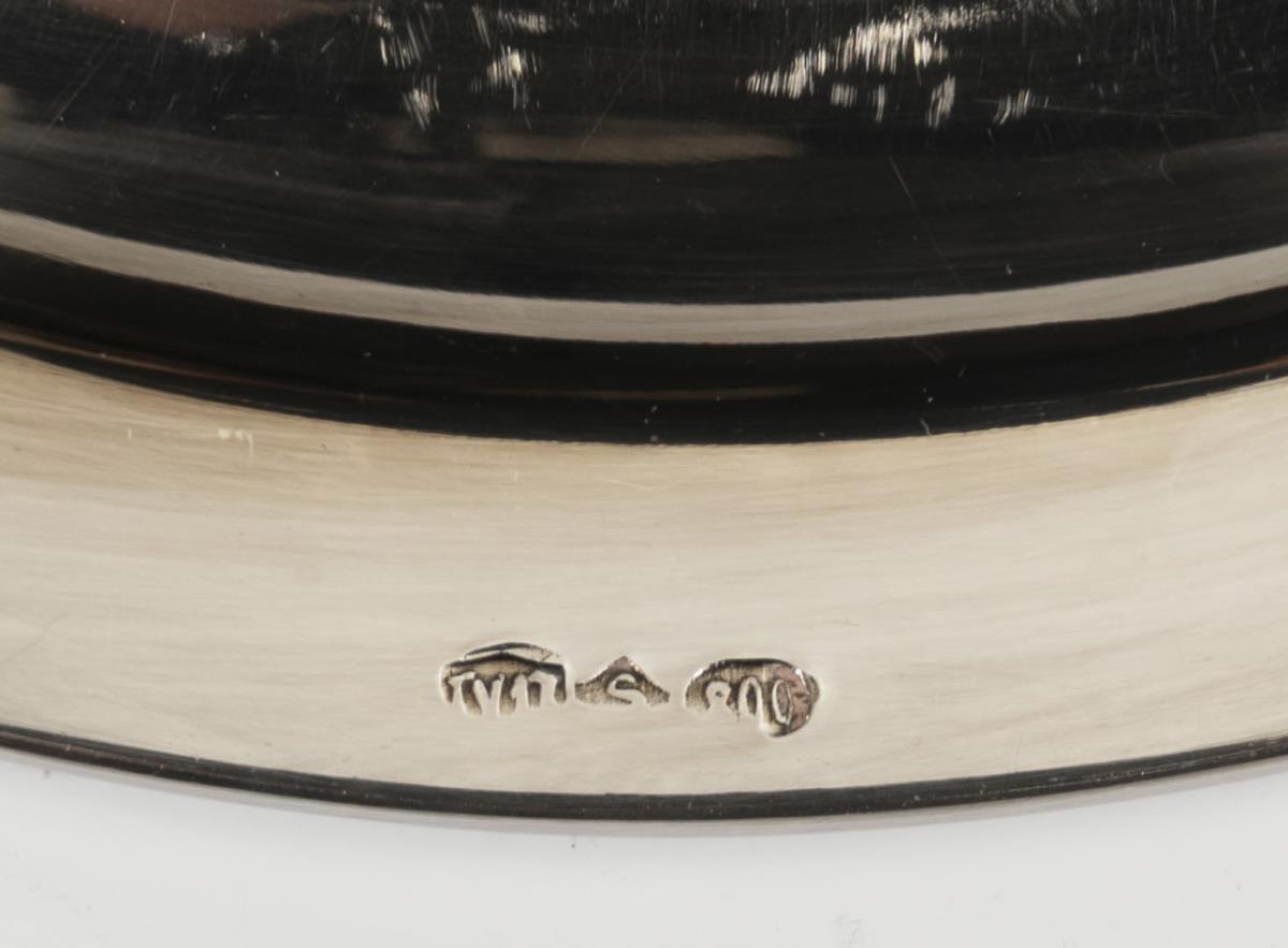 Silver. H 9,5/11 cm, L of tray 26,2 cm. 621 g.