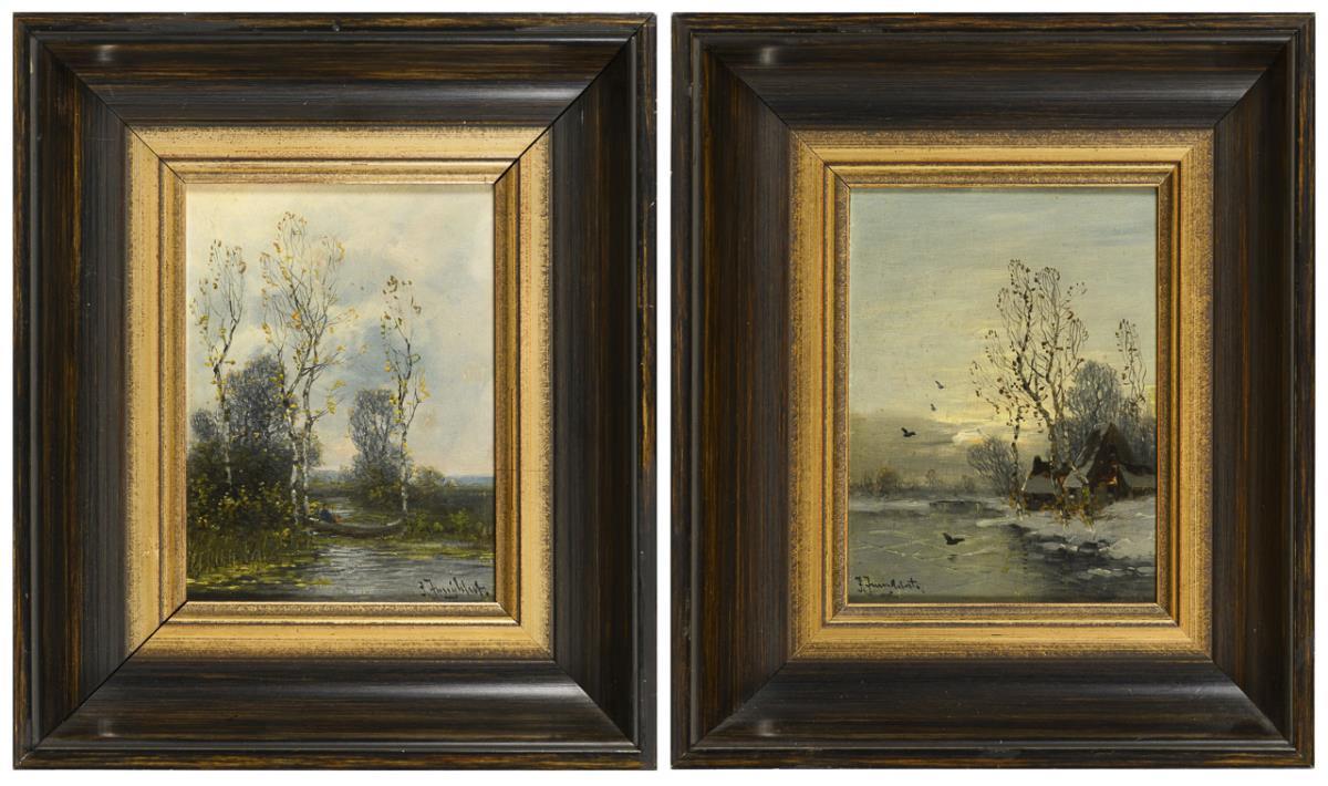 Each oil/wood. Signed lower left and right respectively.