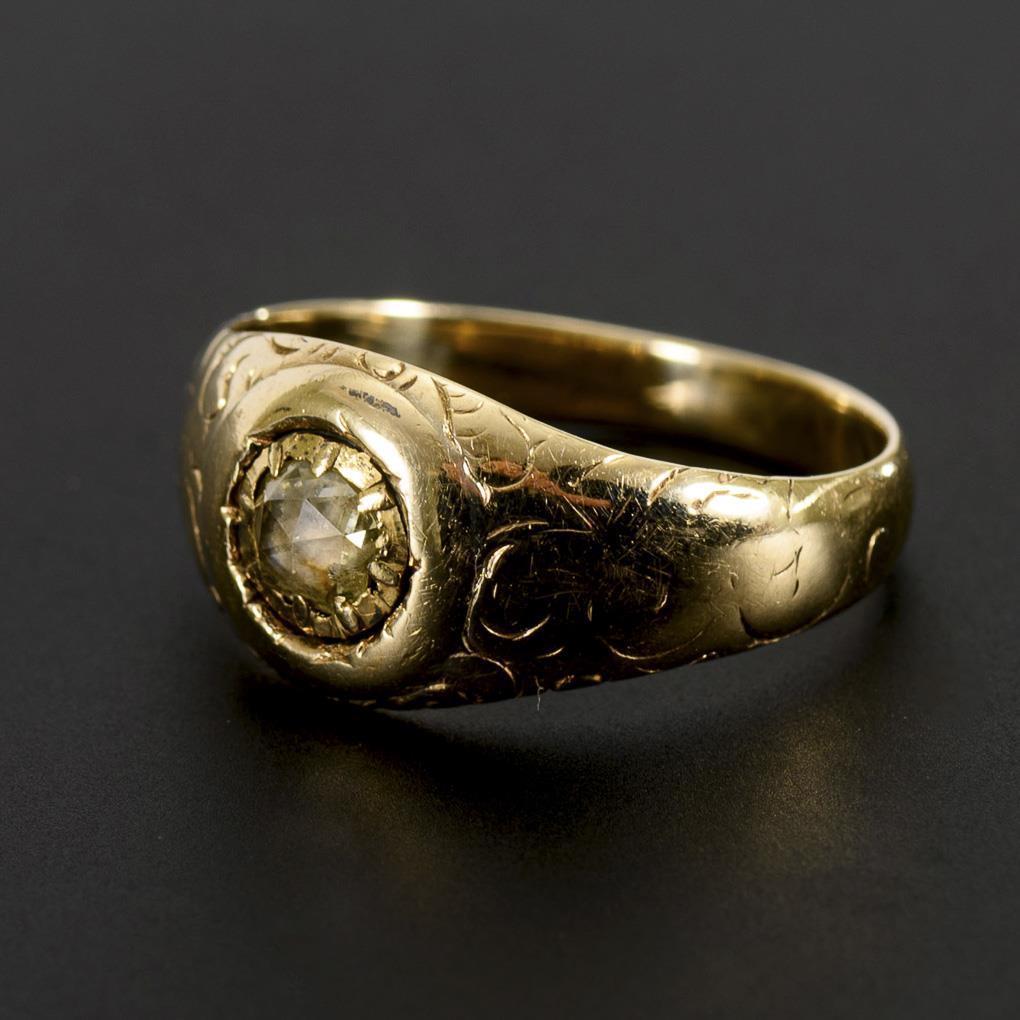 Yellow gold 585 checked. Engraved F. u. S.B. 24/12 56. ring size 60. /div>
