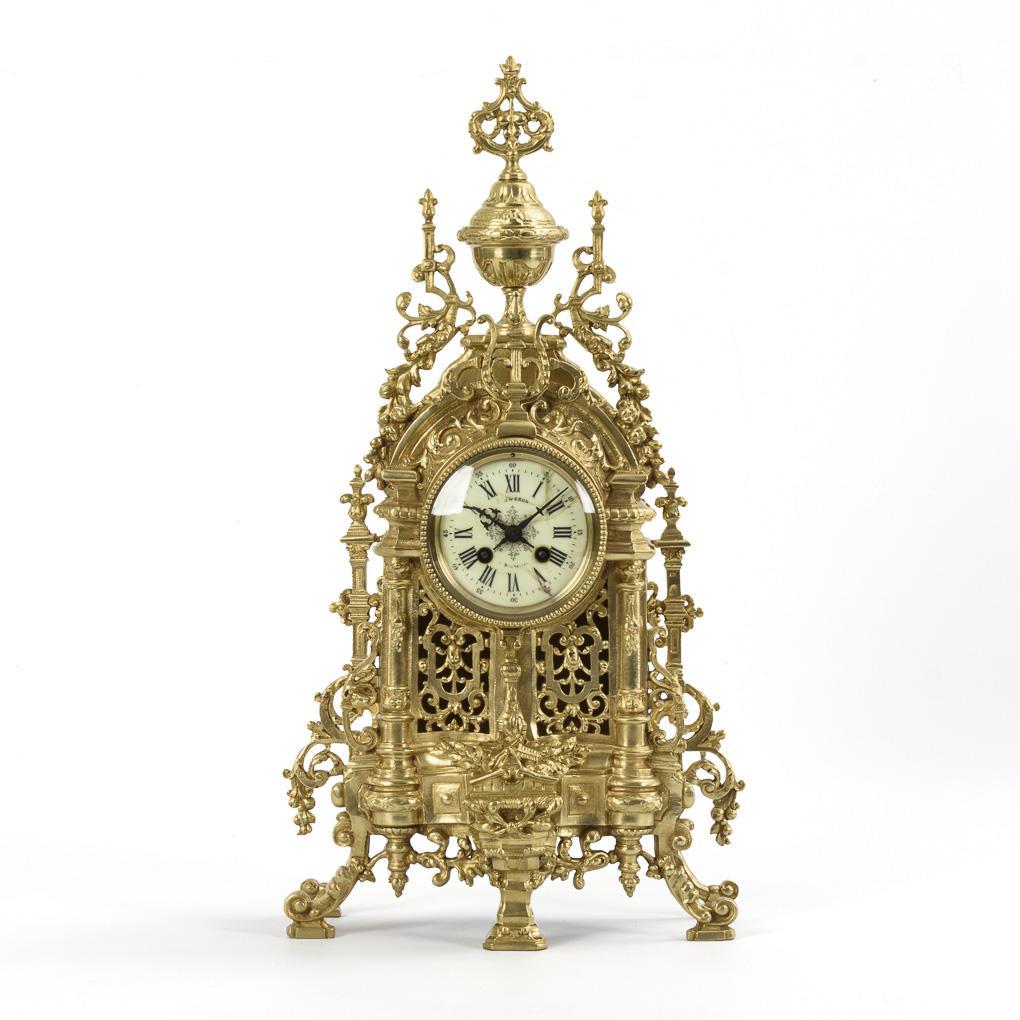 Market movement with half-hour strike on bell, dealer stamped "Raisch & Thomas Successeurs", running. Arched glazed ivory dial with Roman and Arabic numerals, minute ring and Romaines hands, marked "C. Swéron à Bruxelles".