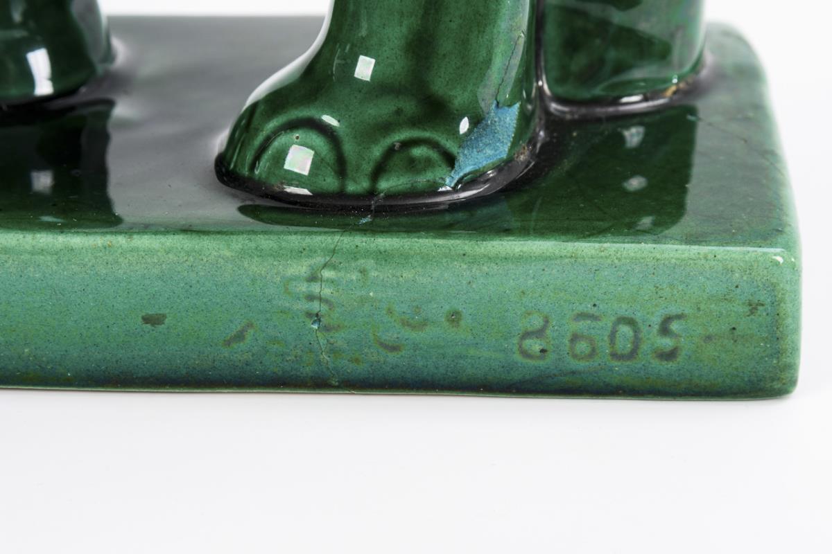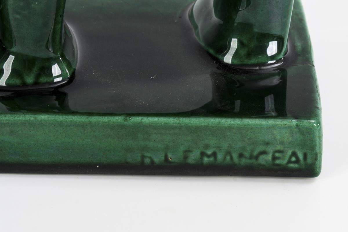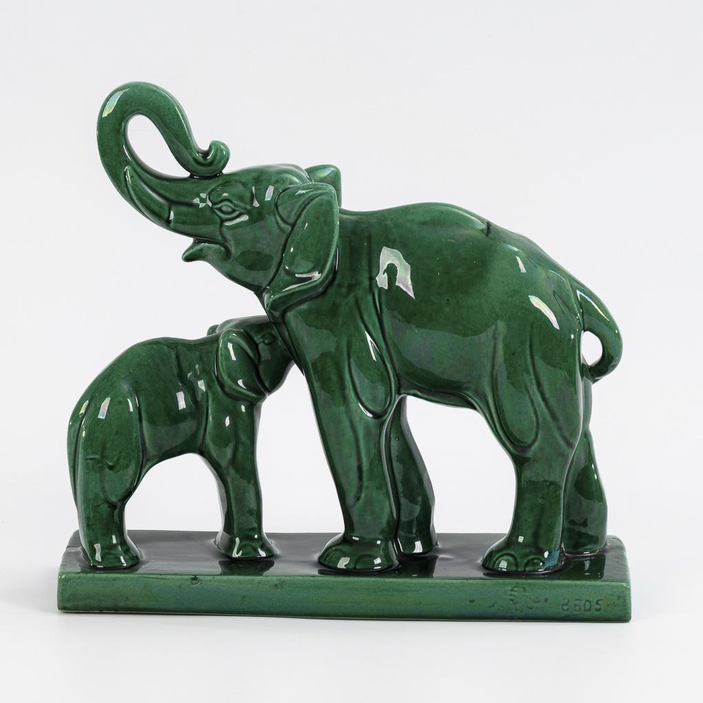 Art deco animal group: elephant cow and calf. Faiencerie Saint Clément.