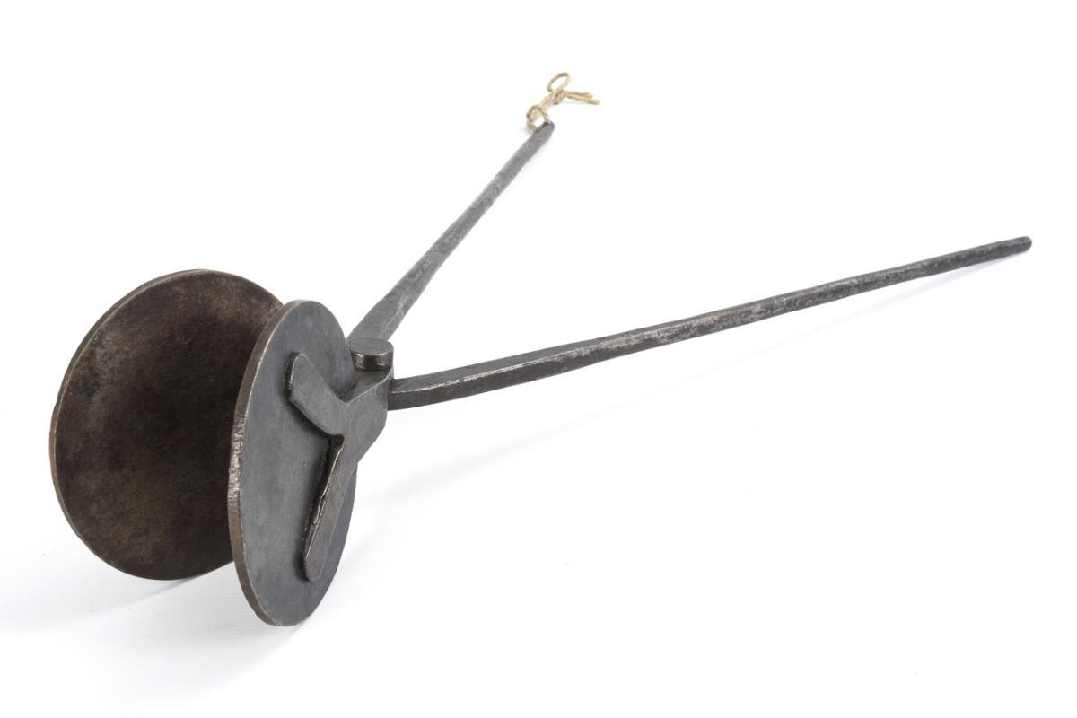 Tongs with round "waffle iron" without relief inside. Arresting lever missing, a few signs of age/use.