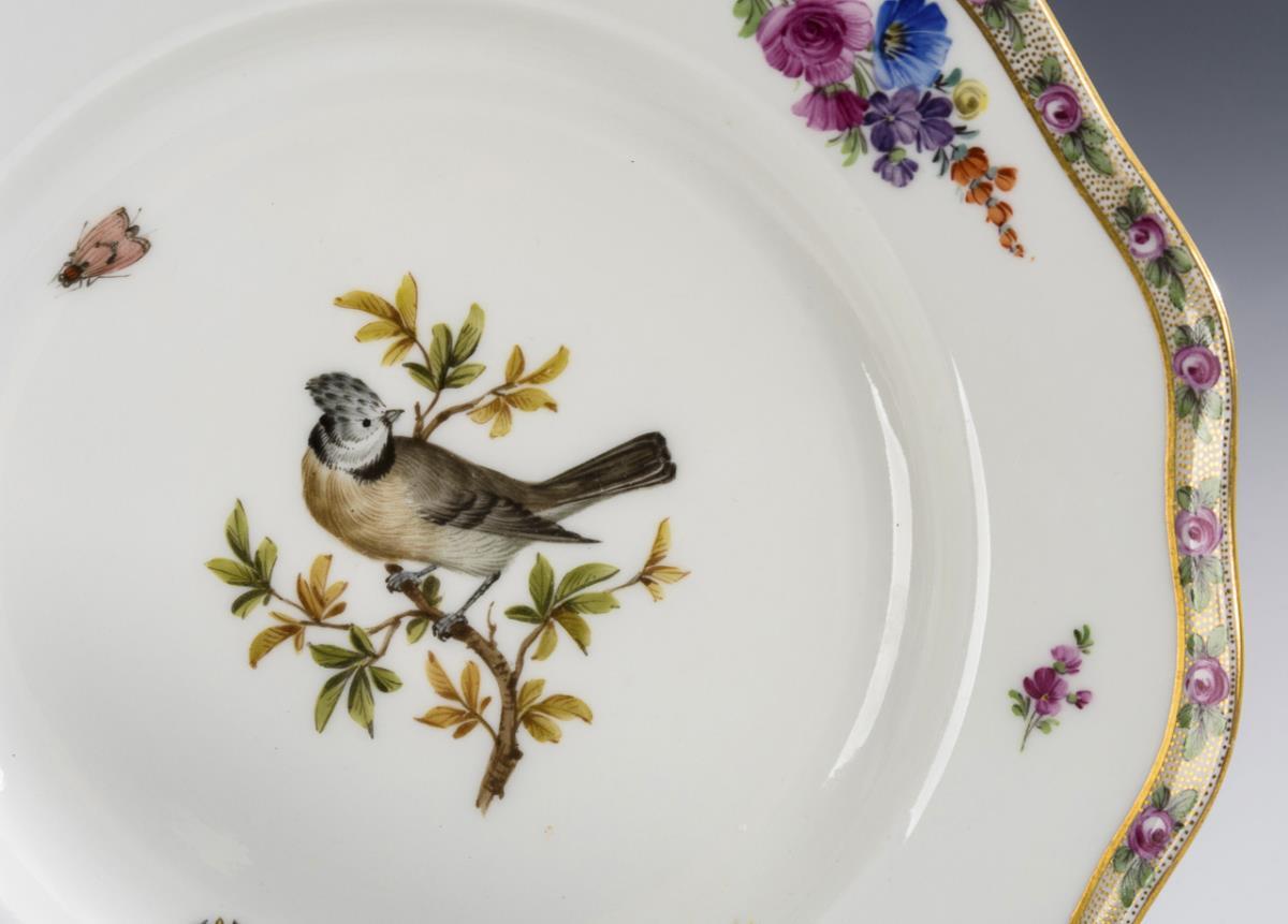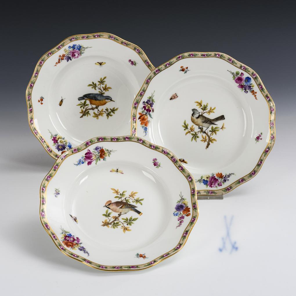 3 plates with bird painting. Meissen.