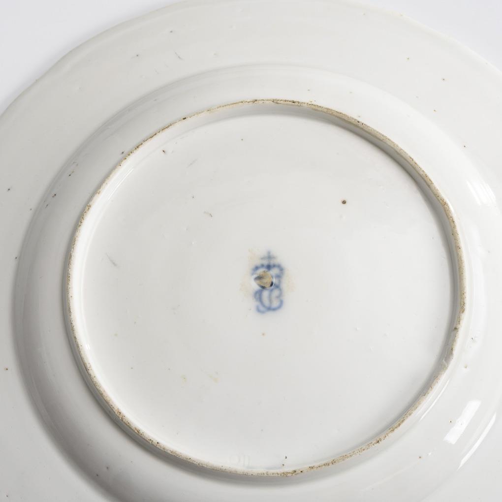 Polychrome painted, gold decorated. Ø 23 cm.
