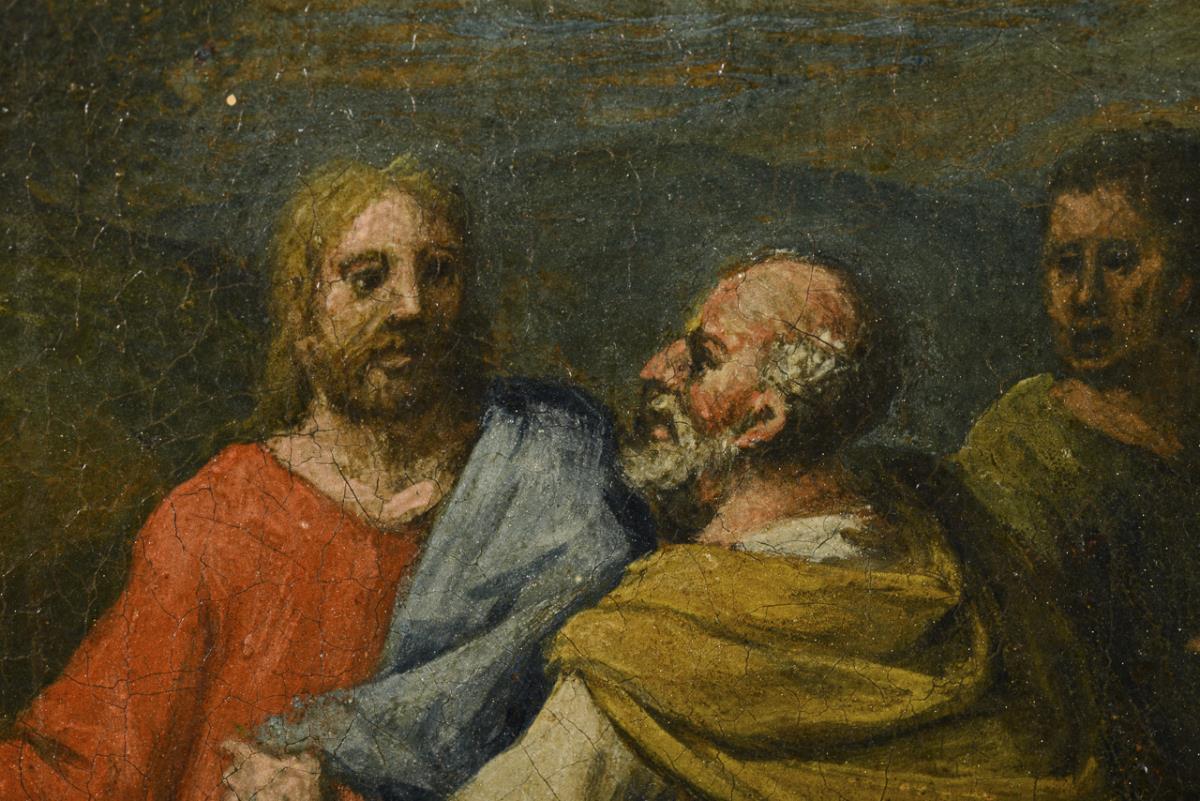 Depiction of the healing of the lame man on the roadside, as well as a scene with shepherds listening intently to a boy. Each canvas doubled.