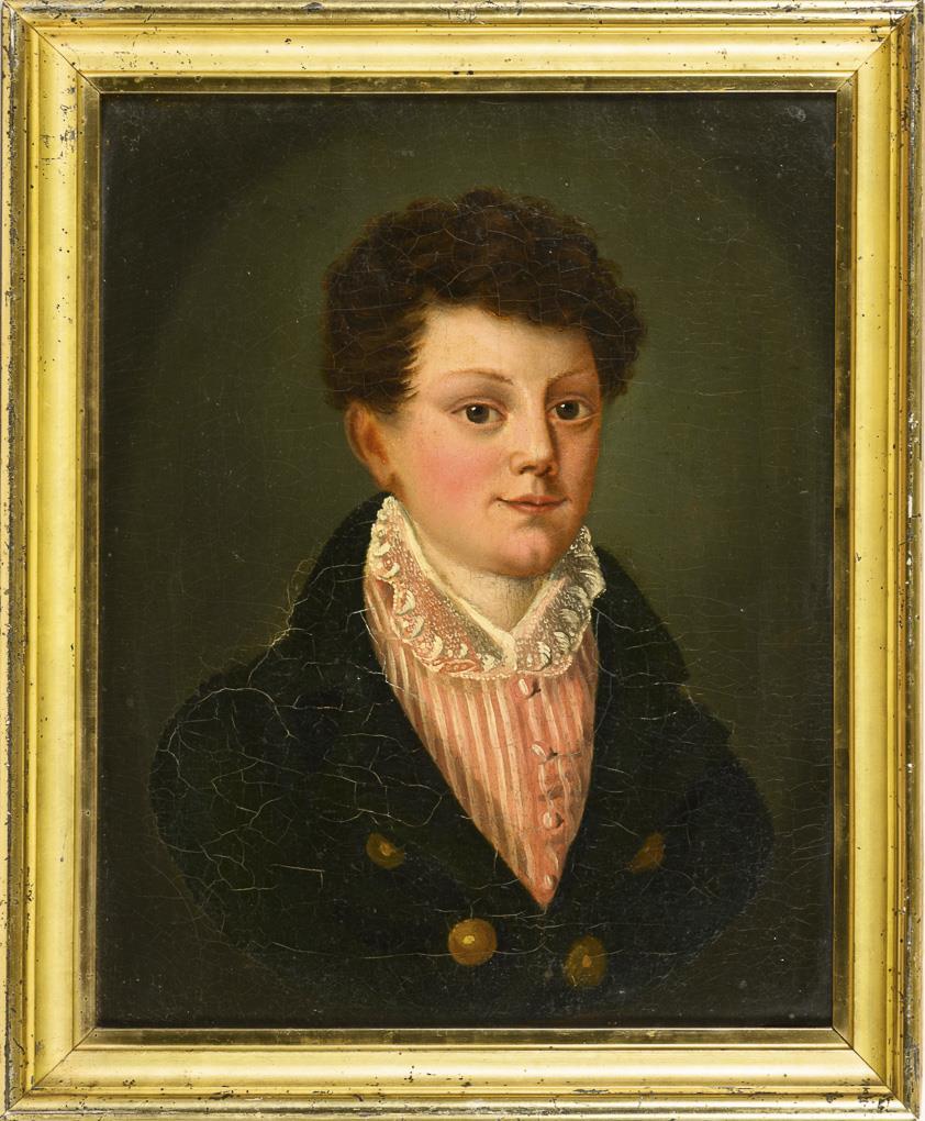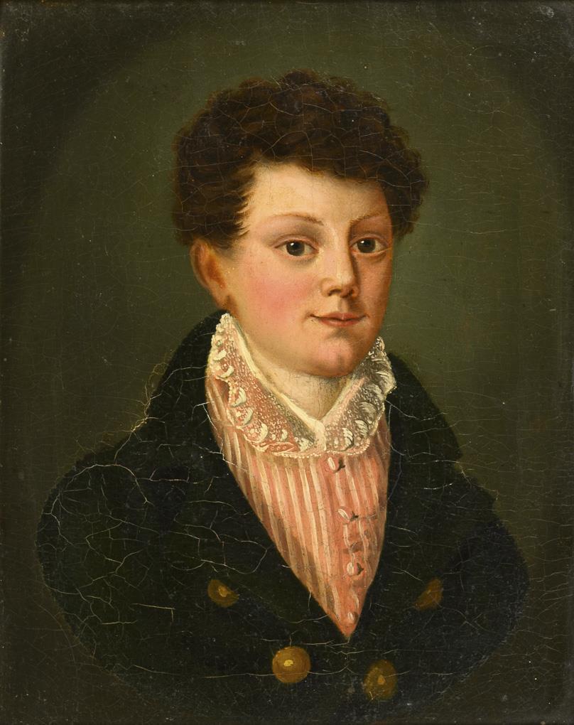 Oval painted portrait of Otto von Buo[...] (1807 - 1819) in striped shirt with dark frock coat. Traces of age.