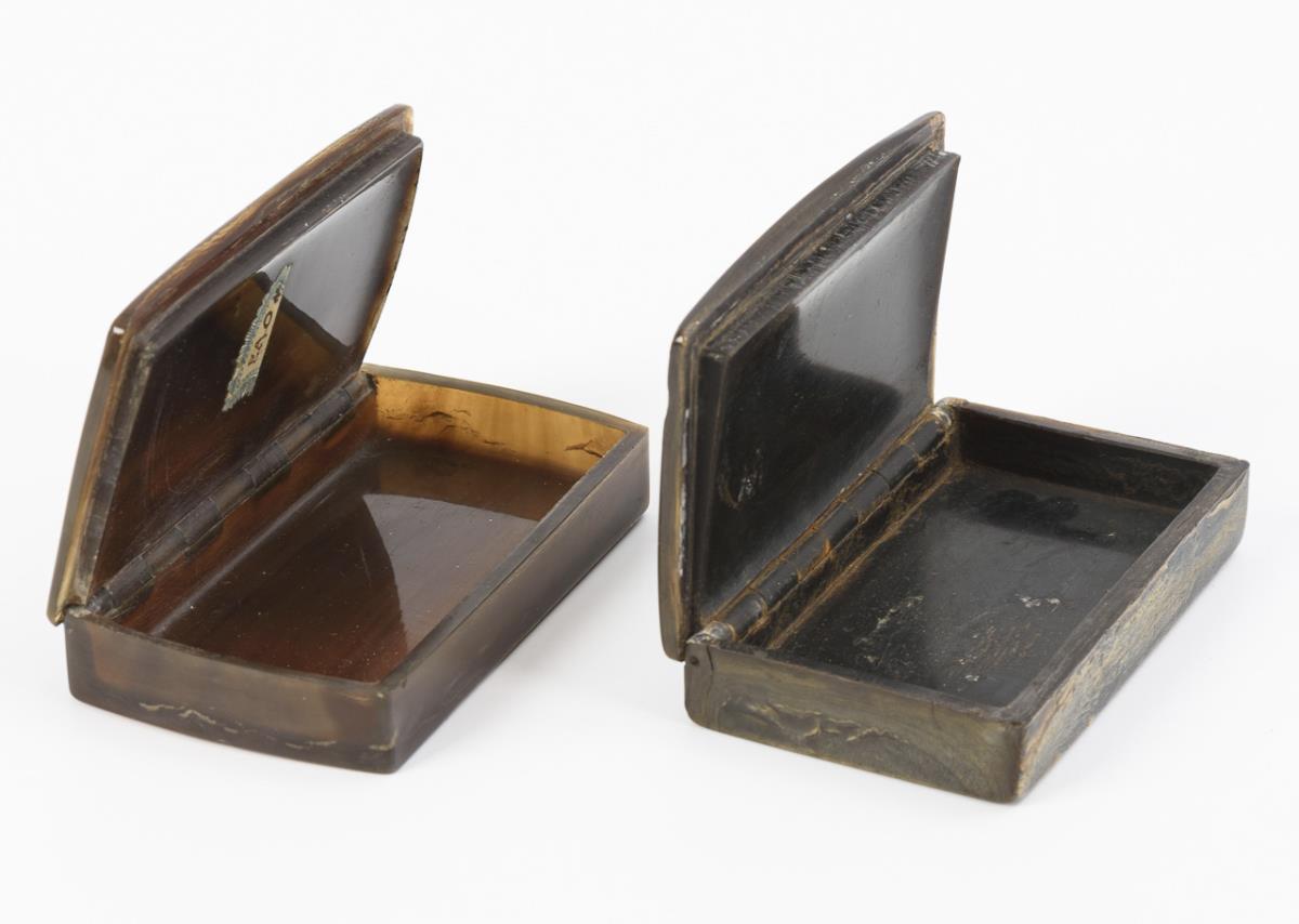 Horn, lid embossed. 3 x 9 x 5 cm each.
