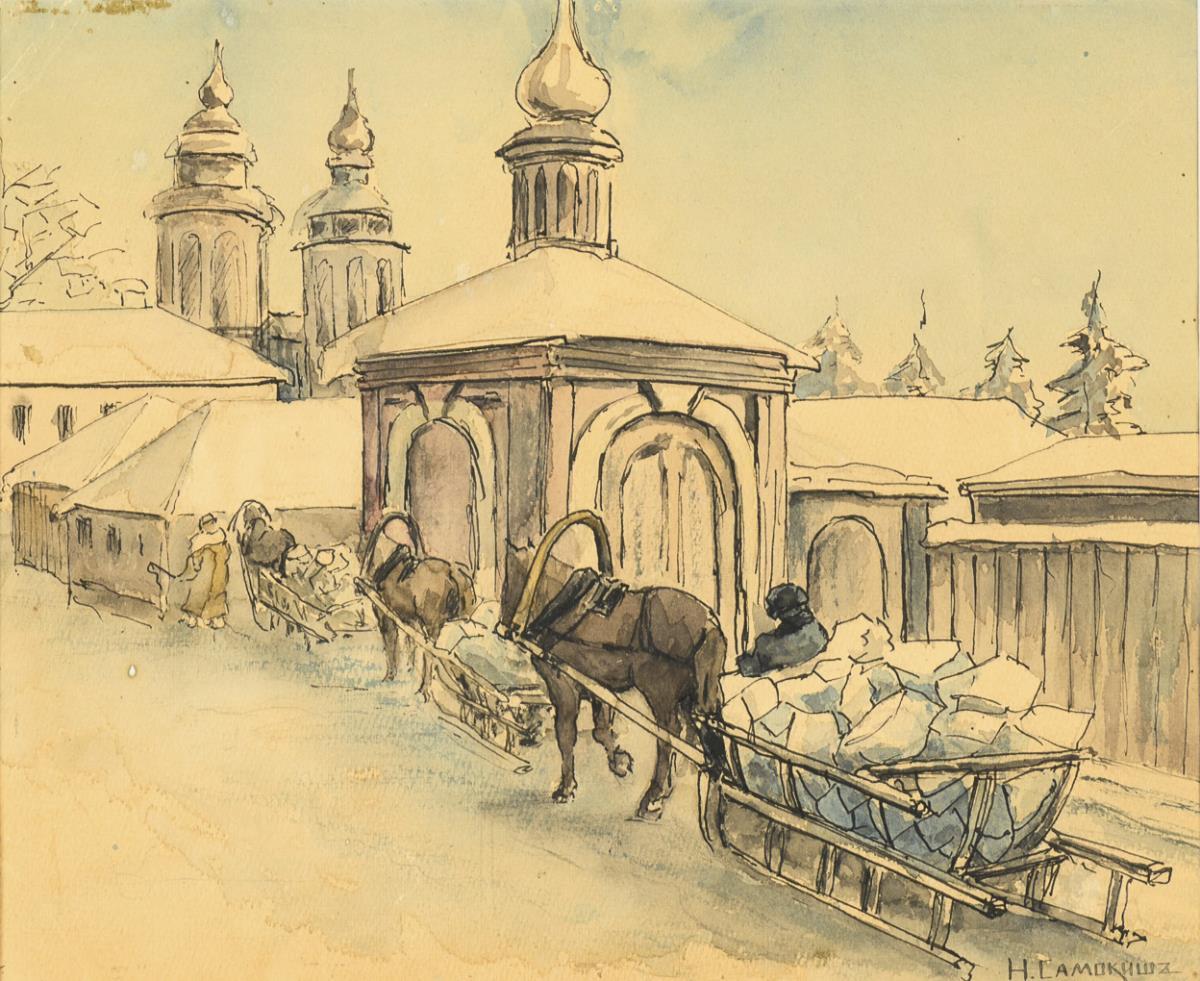 Watercolor/ink. Signed in Cyrillic on the lower right.