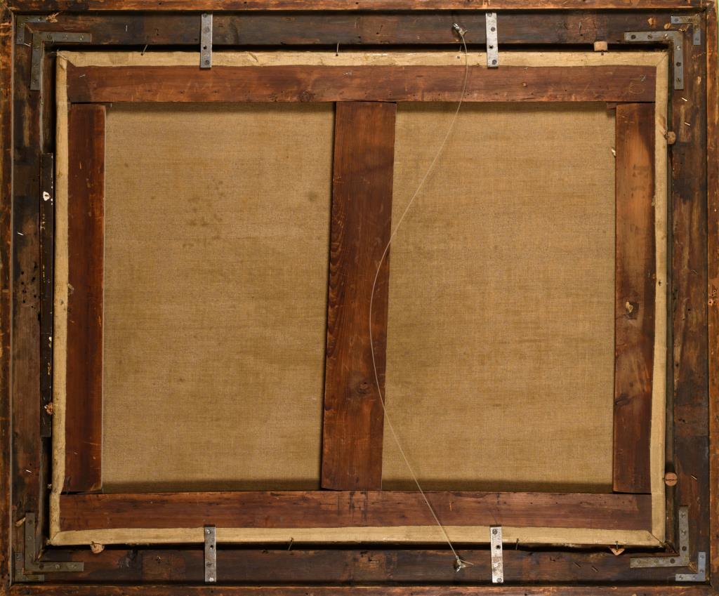 140 x 190 cm.Gerahmt: 191 x 126 (vergoldeter Schnitzrahmen mit Krone über Initialen auf Wappenschild).