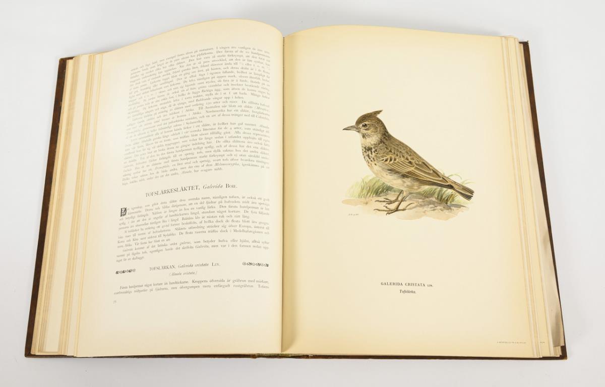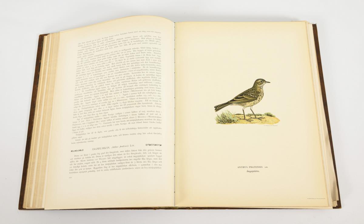 Numbered edition, no. 199. First volume of three. With stone drawings by M., W. and F. von Wright and texts by Einar Lönnberg, in leather binding. 295 pages of text, some with photographic illustrations and 74 full-page color lithographs. A few illustrations missing, thus a few pages of text loose.