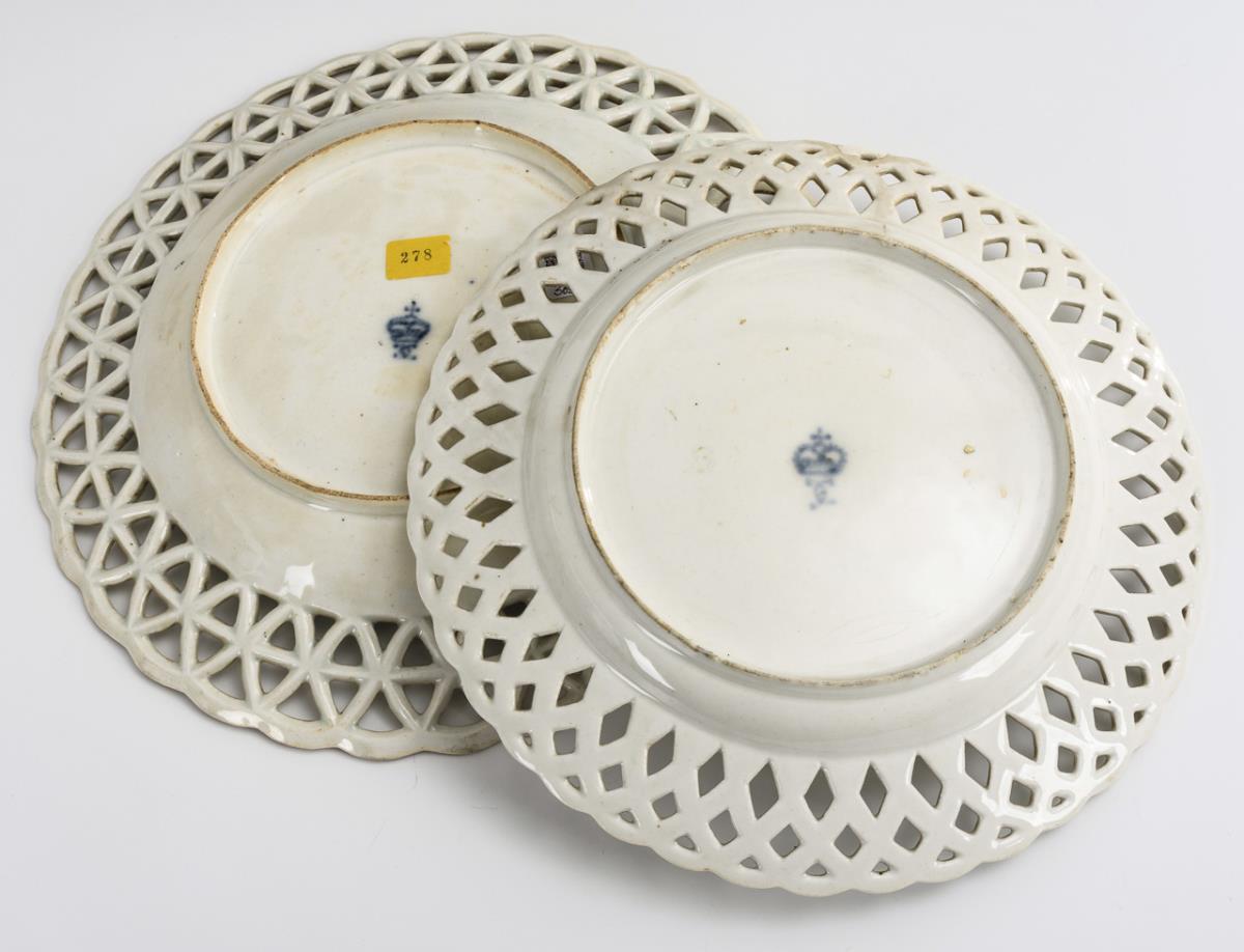 1x with basket-opened flag (Ø 25 cm) and 1x with ring-opened flag (Ø 28.5 cm). 1x with small rim restoration, 1x with small rim bump.
