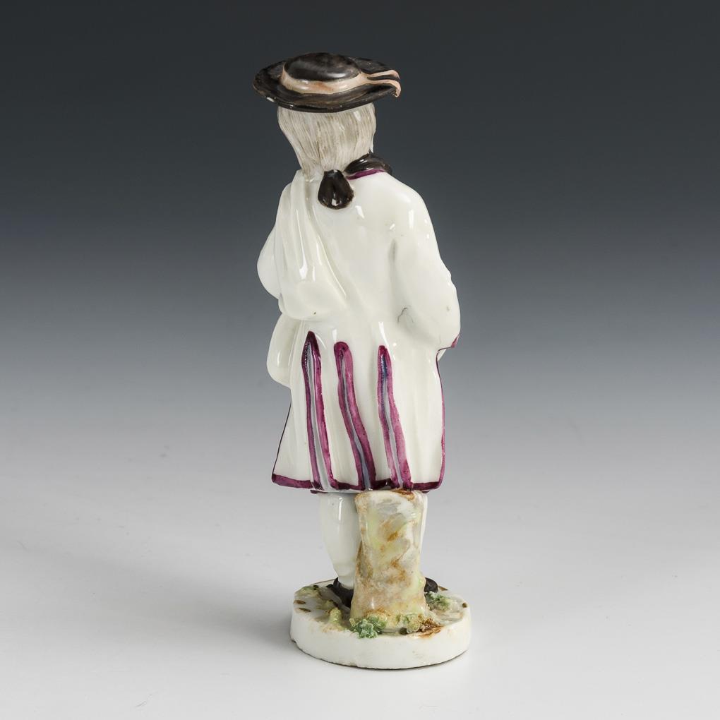 Standing boy in traditional costume with hat. Minimal bumps on the stand, minimal gold wear.