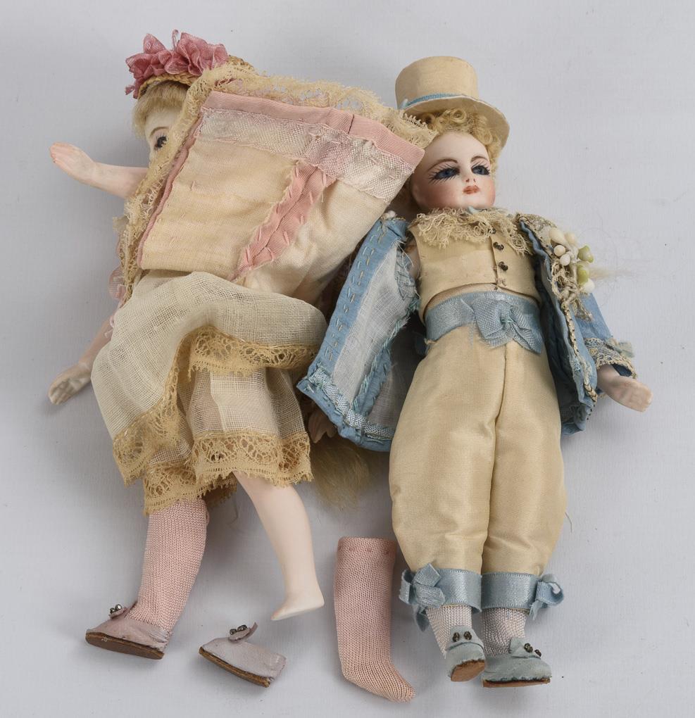 Pair of mignonette dolls. Presumably Parisian replicas of the 1970s / 80s.