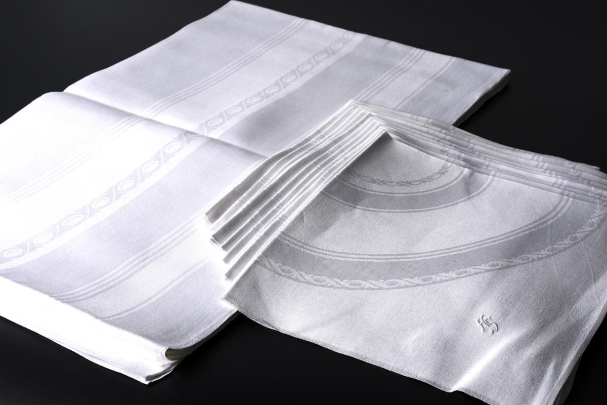 Linen damask. 275 x 160 or 60 x 58 cm.