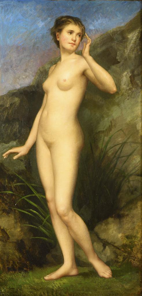 Standing nude in landscape