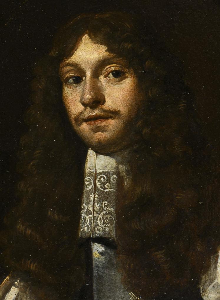 Quality portrait of a young man with long curly hair and in more upscale clothing against a neutral background.