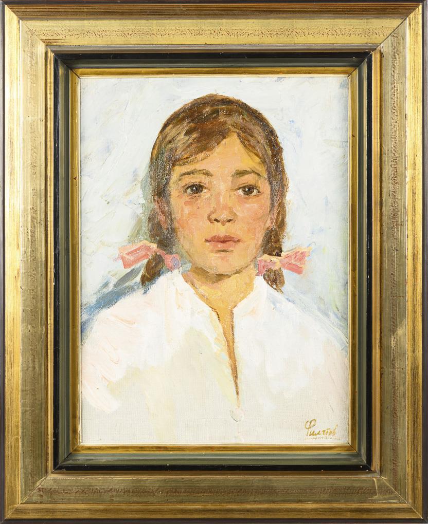 Oil / canvas. Signed lower right, signed/titled in Cyrillic on verso. 1968.