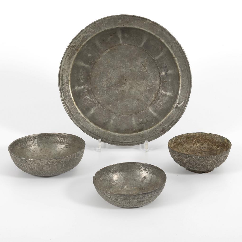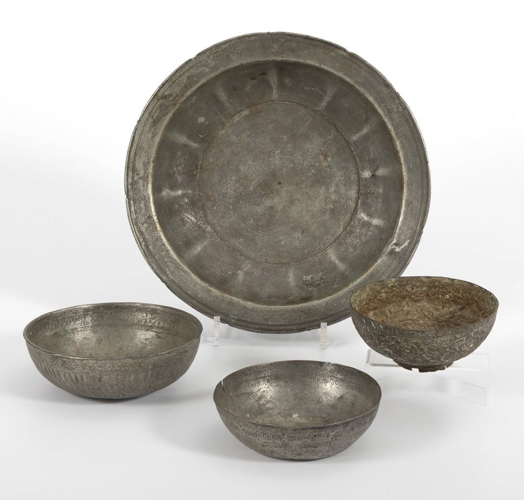 4 Persian metal bowls.