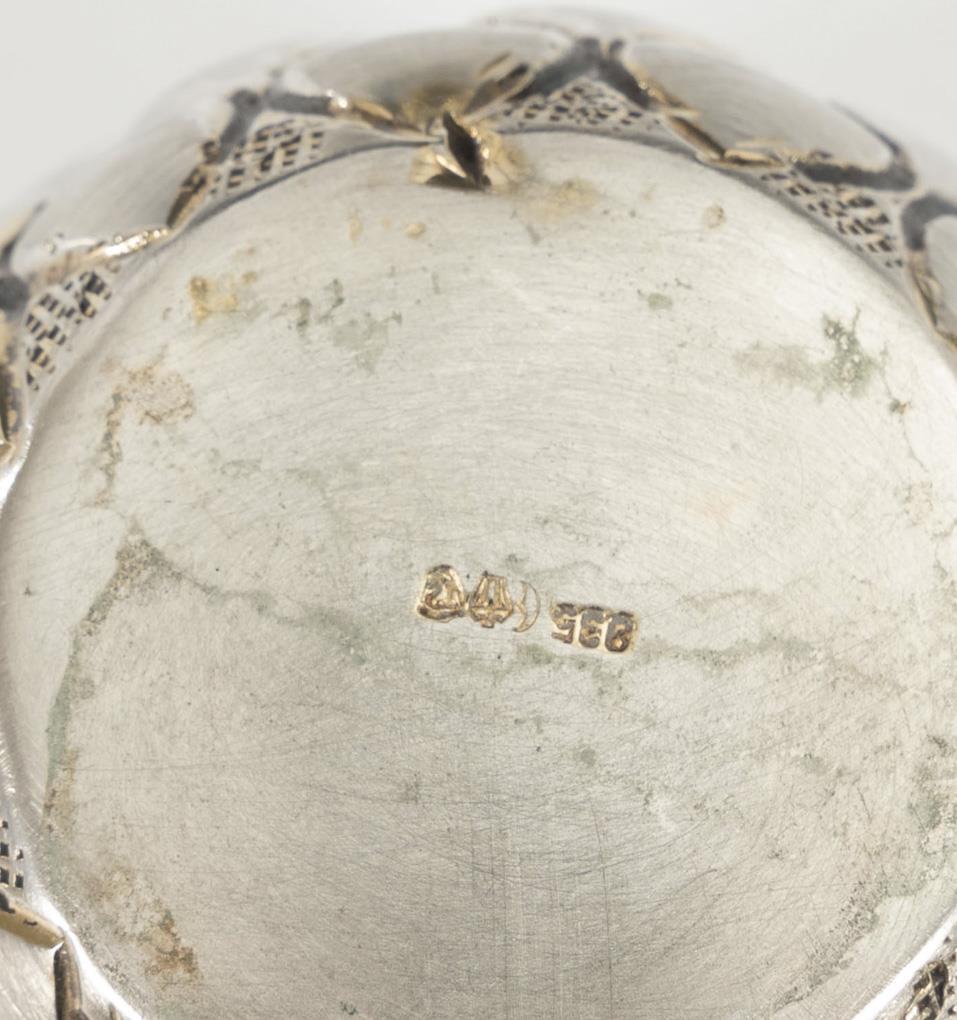 Various cups, including 1 heart cup in baroque style and 2 cups with engravings. 1x dated "13.9. 96". Signs of use, 2x heavily dented.