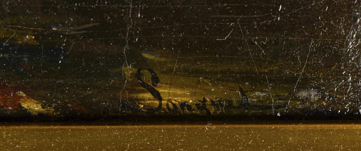 Oil / canvas / wood. Signed lower right.