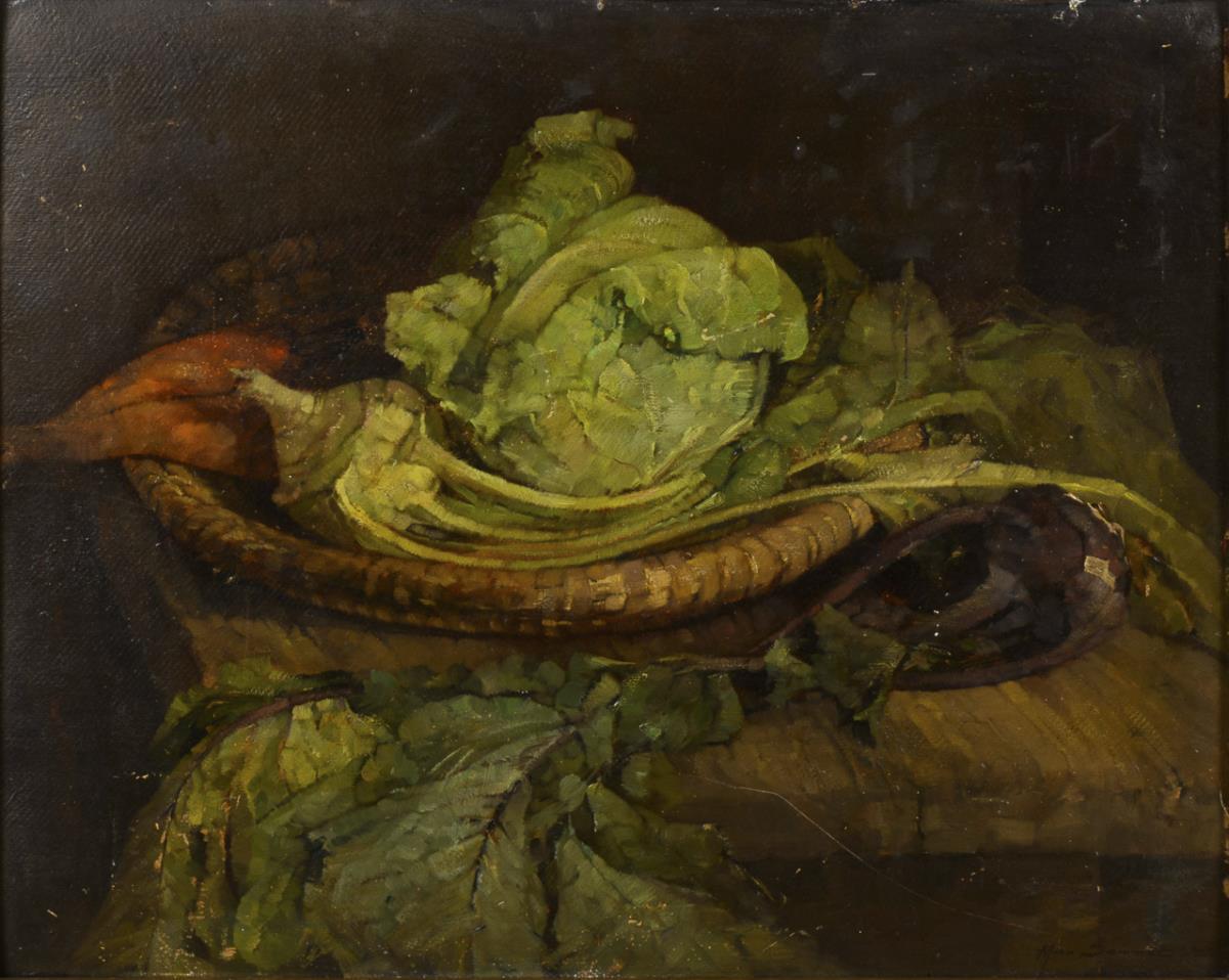 Kohlrabi and cabbage on a table in bright light. Scratch.