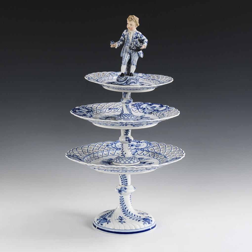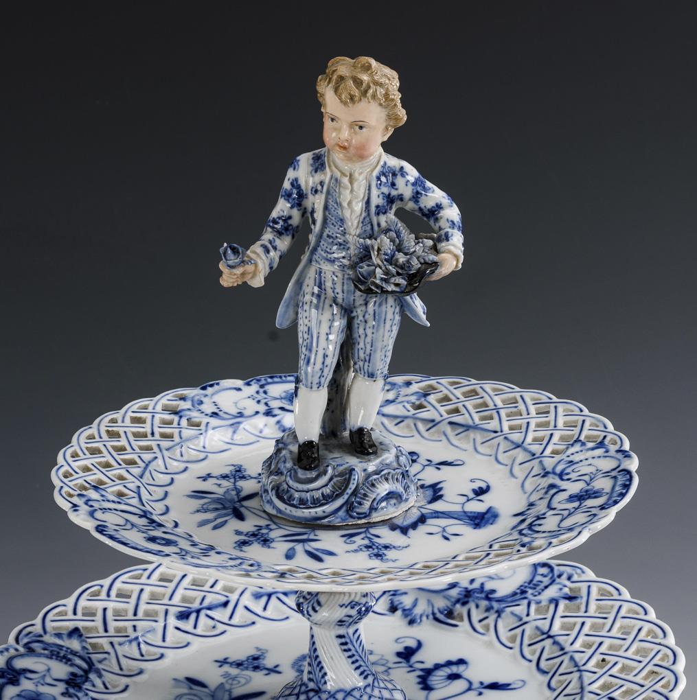 Etagere with three breakthrough plates and a gardener boy as a conclusion. Flowers and leaves minimally bumped.