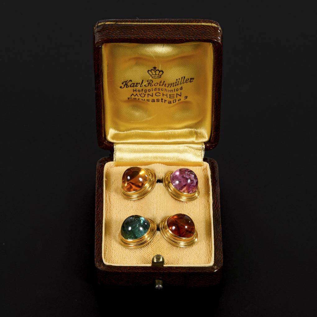 Pair of cufflinks with tourmalines and citrines? in original case "Karl Rothmüller Hofgoldschmied Munich".