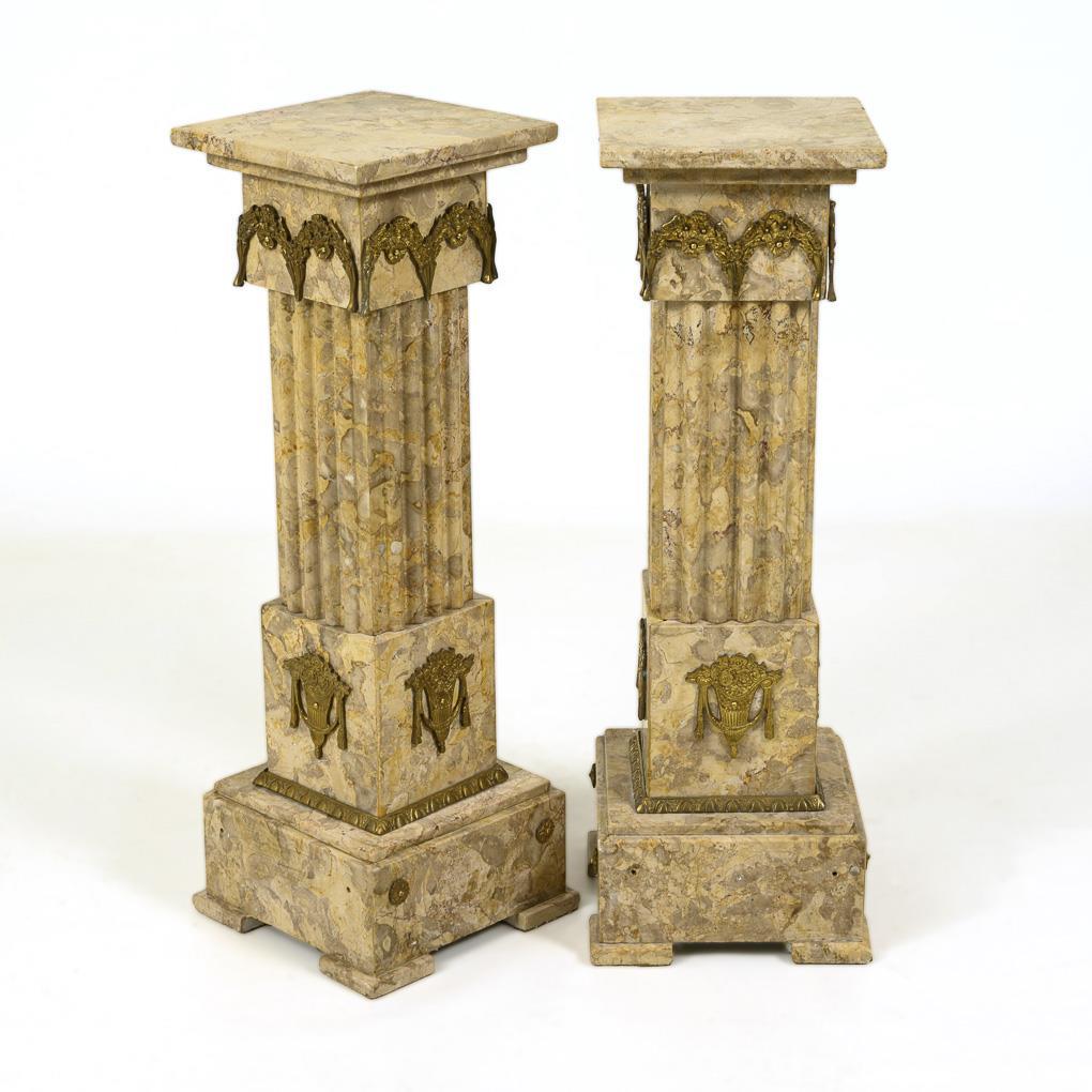 Pair of marble postaments in classicism style.