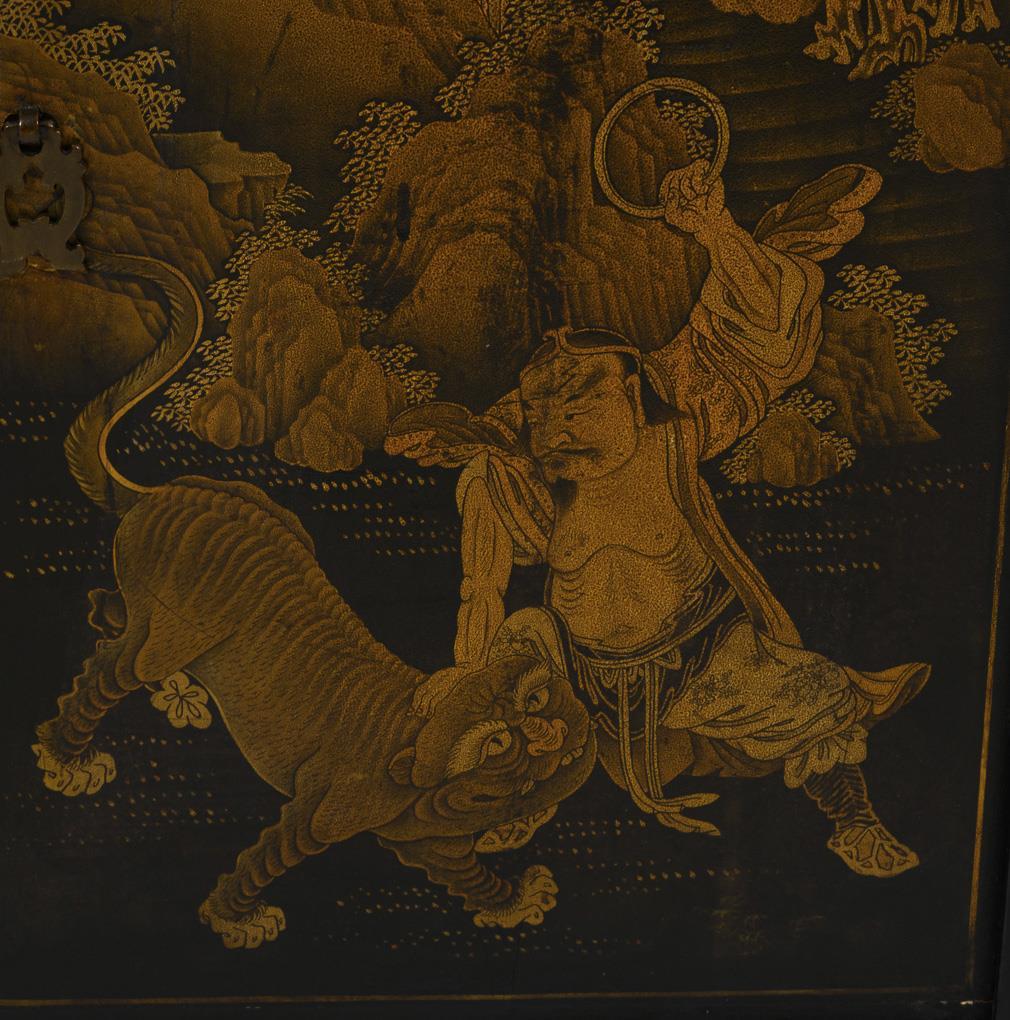 Small Asian two-door cabinet with gold painting| see supplement.