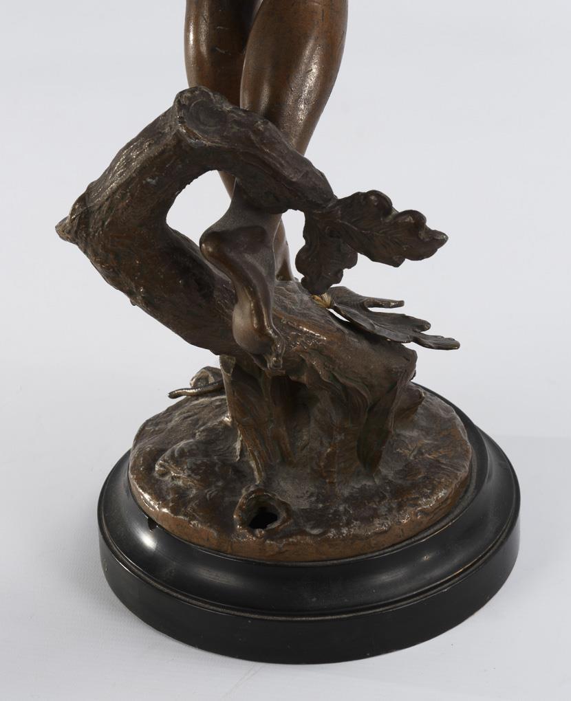 Cast metal, bronze patina, ebonized wooden plinth. Circa 1900. titled on the plinth. H 65 / 69 cm. 5,3 kg.