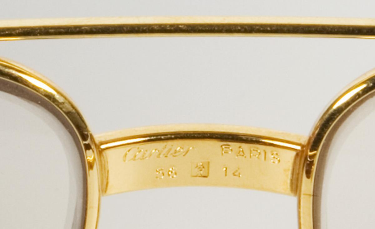Cartier Paris Frame France. Well preserved classic pilot shaped watch. Gold plated metal frame, lightly tinted lenses. Case with frontal logo embossing and gold-tone hardware.