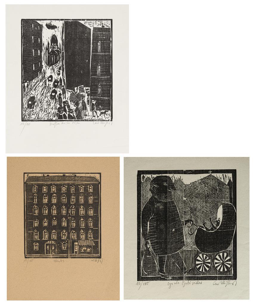 "Evening", copy: 113/180, sheet: 64 x 49 cm, upper margin somewhat creased | "Grandpa as a babysitter", copy: 113/180, sheet: 62: 48 cm | "Streets around", copy: 113/180, sheet: 63 x 48 cm.