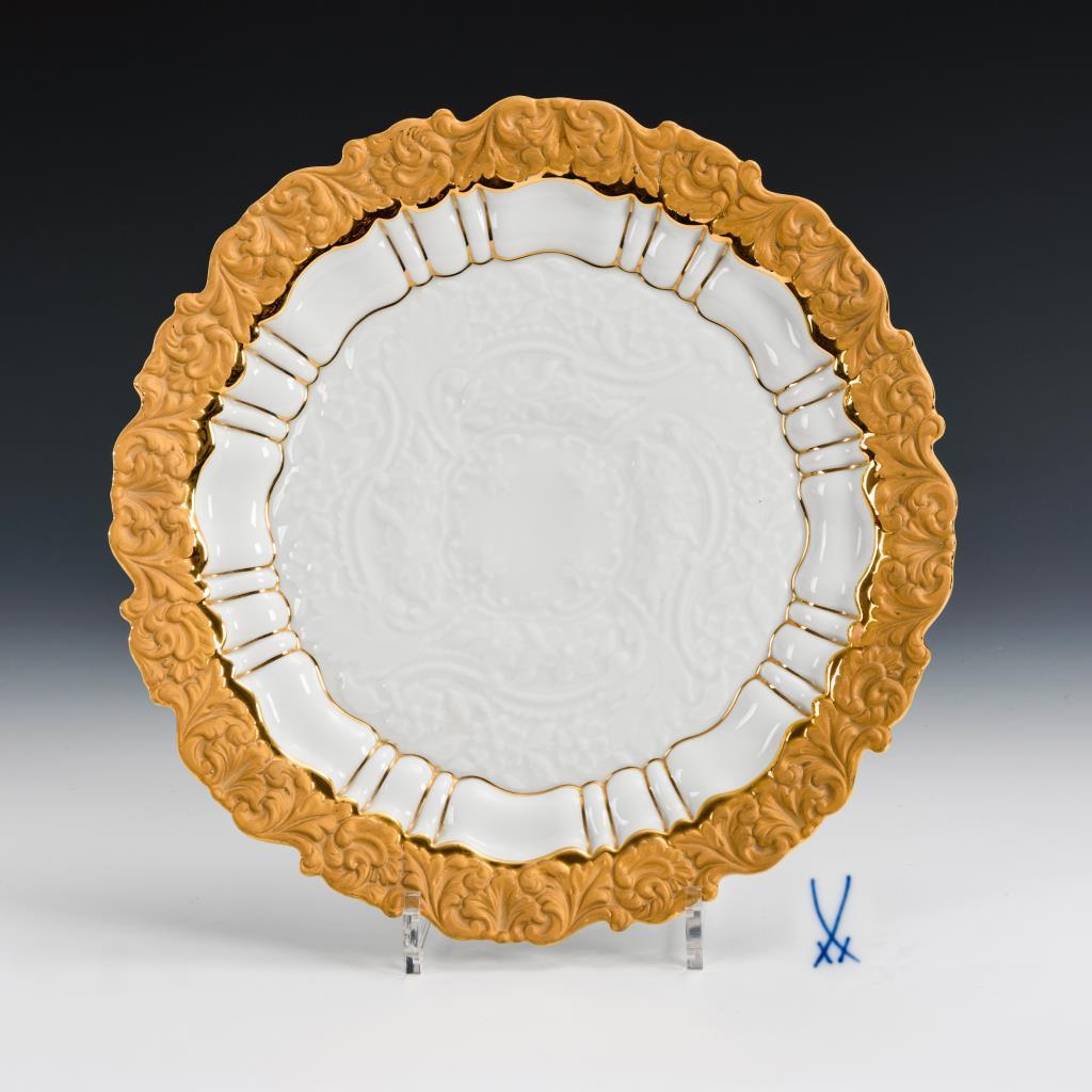 Weiß mit teils bronzierter Goldstaffage.Ø 32 cm.
