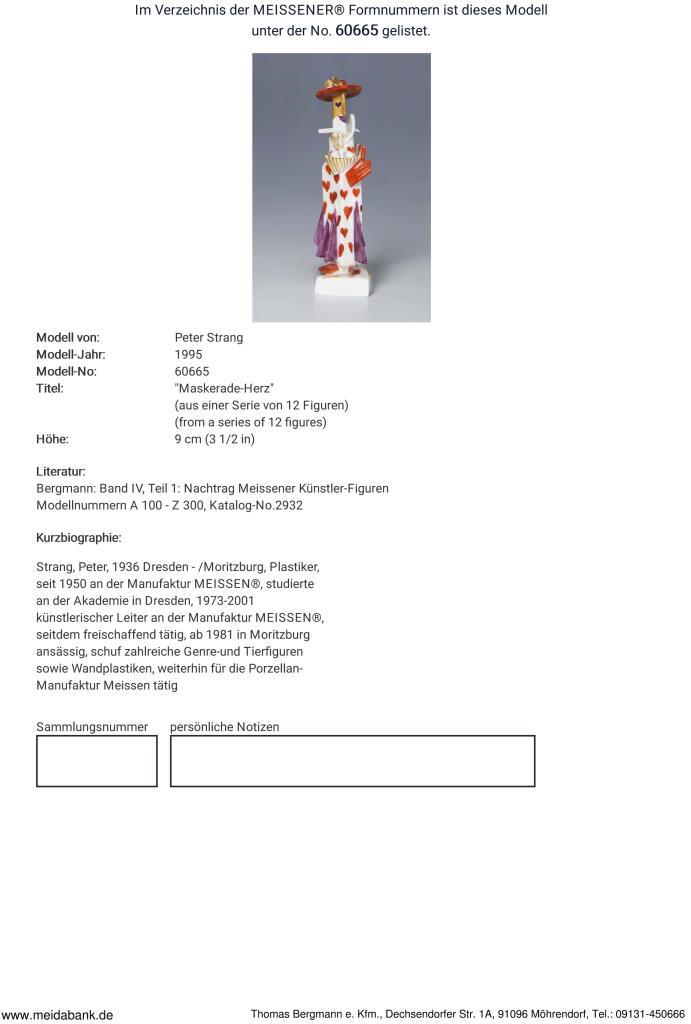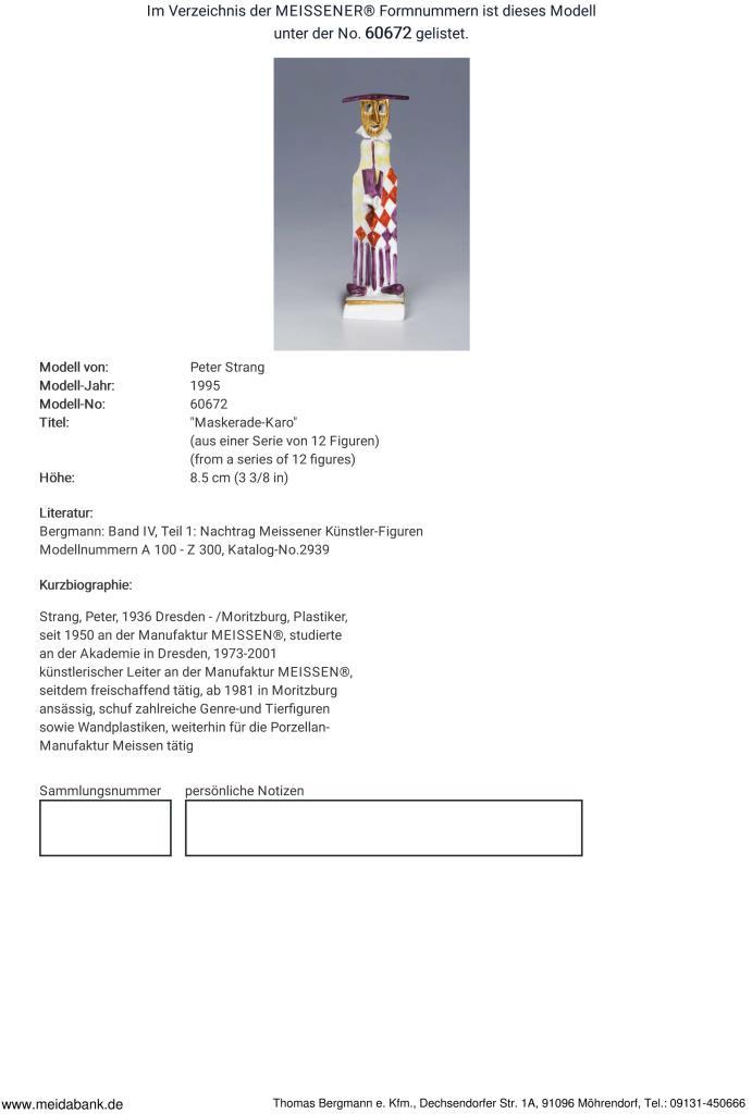 Schwertermarken, 1. Wahl, Künstlersignet, Pressmarken.Nach 1995.Modell-Nr.: 60665, 60672.Entwurf: 1995.STRANG, Peter (*1936 Dresden)
