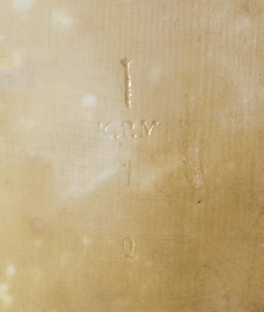 Painting detail after the painting by Alexander von Liezen-Mayer (1839 Györ - 1898 Munich). Gretchen, a character from the tragedy Faust by Johann Wolfgang von Goethe. Colored painting, unsigned. Unglazed base, incised mark, pressed mark. Wide flame bar frame. Partial quite a few scratches, dull spots in the glaze.