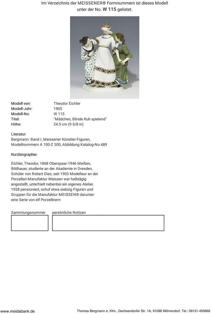 Eichler, sculptor, studied at the Academy in Dresden. Pupil of Robert Diez. Since 1903 modeller in Meissen, was employed part-time, maintained his own studio on the side, retired in 1928 * Partner auction Bergmann.