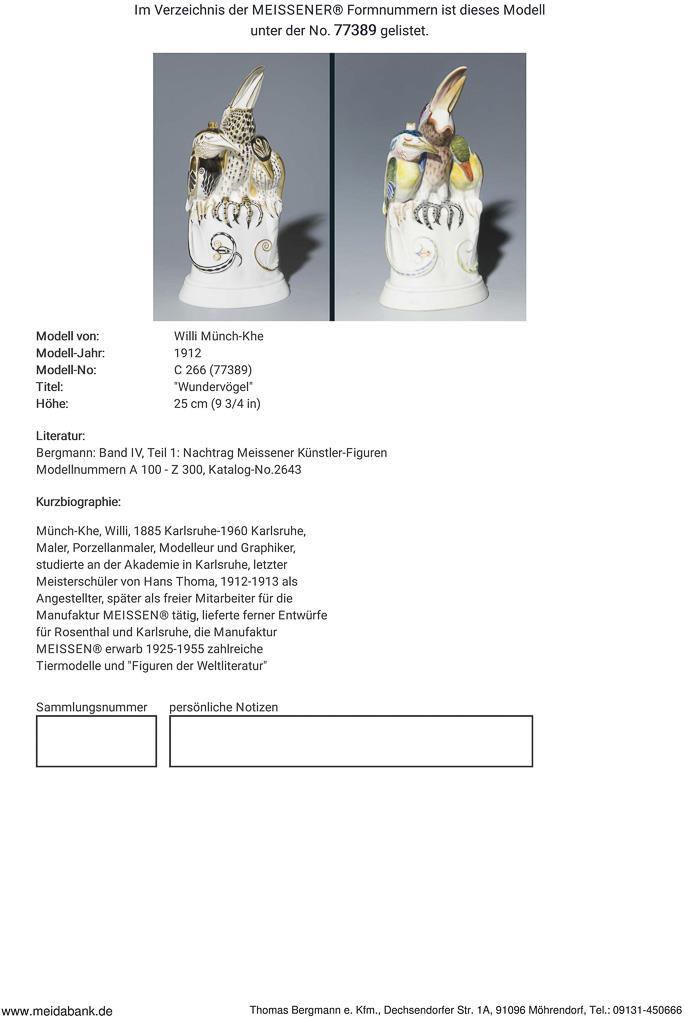 Münch-Khe, painter, porcelain painter, modeller, graphic artist. Studied at the Academy in Karlsruhe. 1912-1913 worked as an employee, later as a freelancer for Meissen. Meissen manufactory price: 6990, - Euro * Partner auction Bergmann.