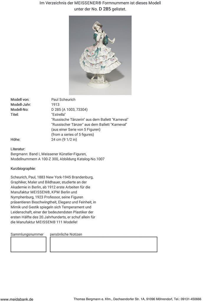 Scheurich, graphic artist, painter and sculptor. Studied at the Academy in Berlin. From 1912, first works for Meissen, KPM Berlin and Nymphenburg. 1923 Professor. Meissen manufactory price: 12000, - Euro * Partner auction Bergmann.