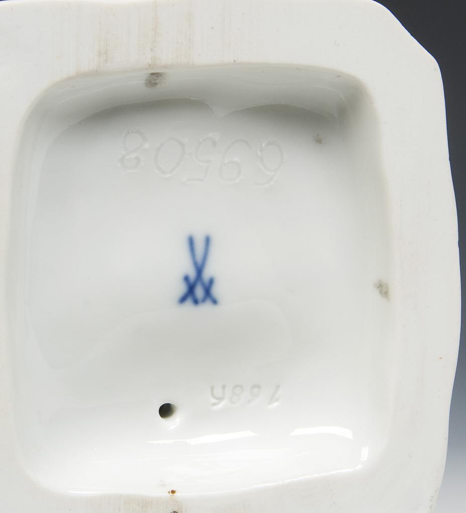 Model by Johann Joachim Kaendler and Peter Reinicke 1750. Colorfully painted, gold painted. Incised mark, press mark, sword mark.