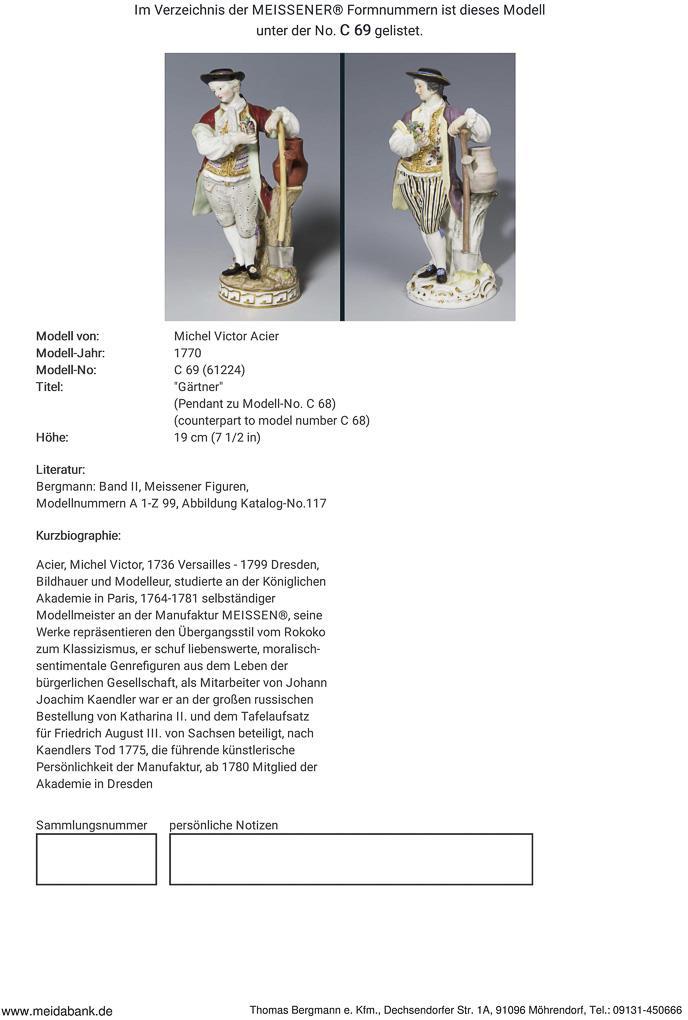 Acier, sculptor and modeller, studied at the Academy in Paris. 1764-1781 independent model master in Meissen. Meissen manufactory price: 4290, - Euro * Partner auction Bergmann.